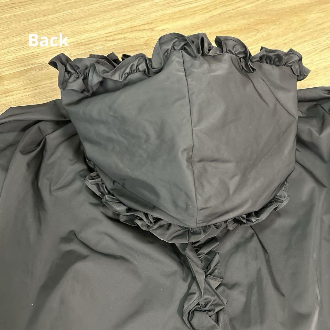 フリルをあしらったフードをかぶると中世の貴婦人を思わせる華やかな表情に。