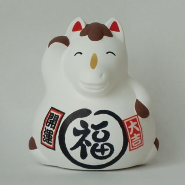 年末・年始に、神社で販売されている置物 東海地区ではテレビ・ラジオでおなじみ、丸英陶器製。 熟練の職人さんが、手作業で着色しています。 高さ 約10cm (陶器) 日本製 三重県四日市市 萬古焼き |