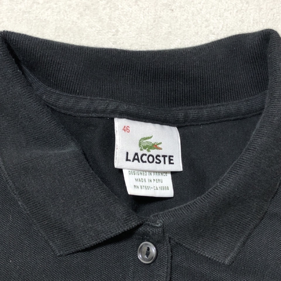 1円~ 60 A-1-22 LACOSTE ラコステ ポロシャツ ブラック サイズ46 フランス製 コットン