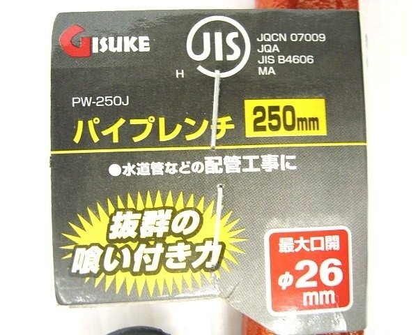 《大関質店》高儀 GISUKE パイプレンチ250mm PW-250J JQCN07009 最大口開φ26mm