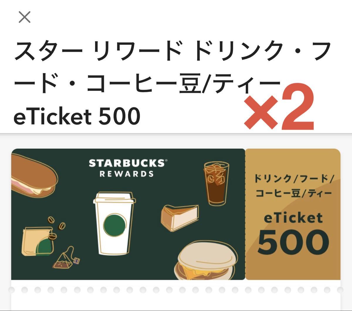 スターバックスのデジタルドリンクeTicket 500税込500円分2枚になります。