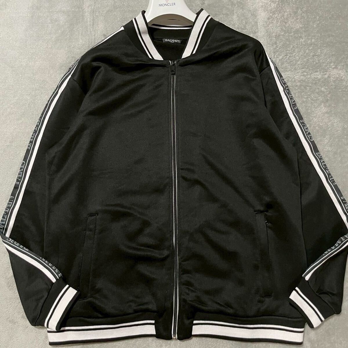 未使用タグ付き★XLサイズ/BALMAIN バルマン ジップ ジャケット ブルゾン ボンバージャケット サイドロゴ ジャージ素材 黒 ブラック メンズ