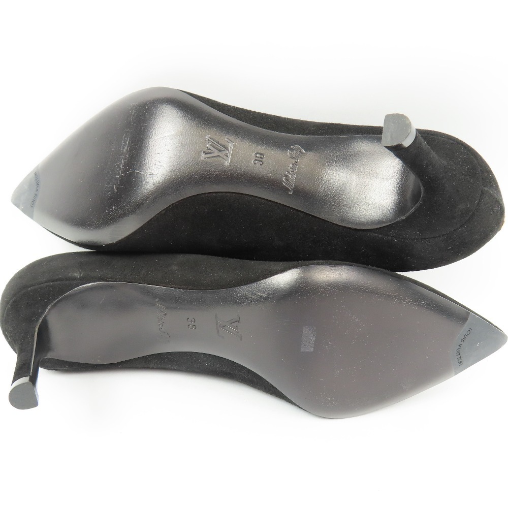 202942★1円スタート★LOUIS VUITTON ルイヴィトン 極美品 LVロゴ 靴 シューズ 38 25 パンプス スウェード ブラック