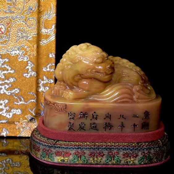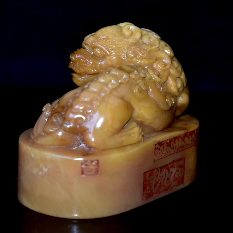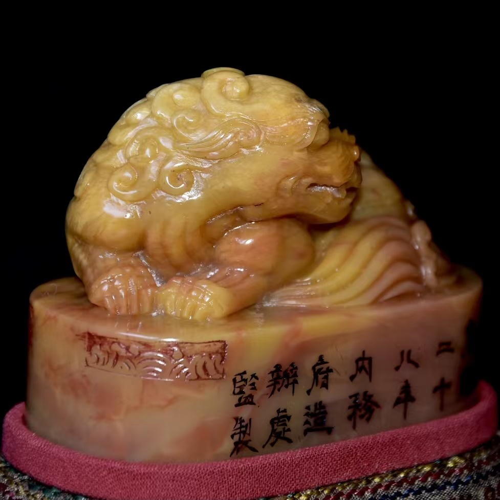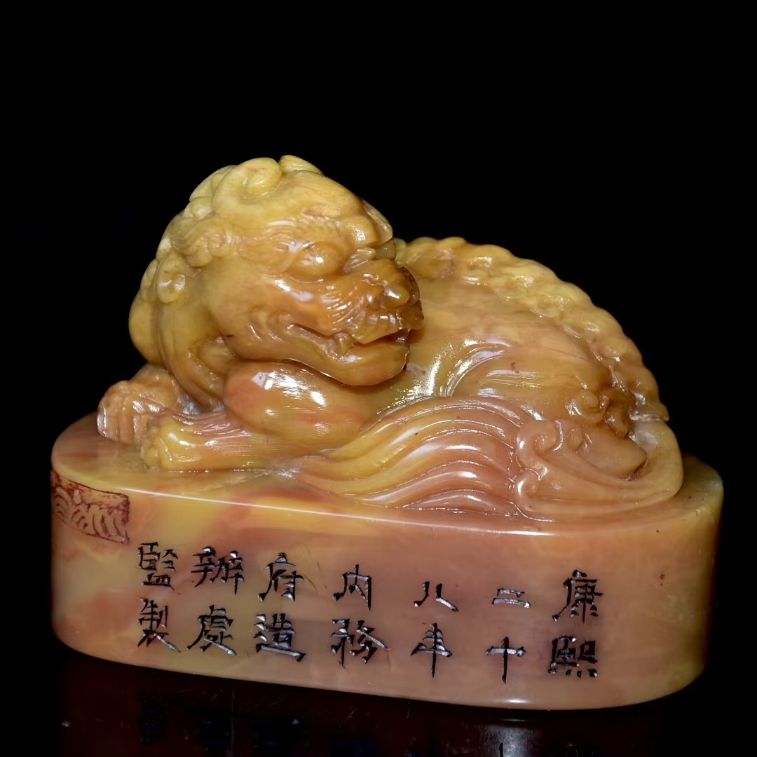 唐物 旧家蔵出 清時代 壽山石 田石 貔貅 印章 印鑑 天然石 文房具 書道具 古印材 古玉彫 極細工 箱有 古置物 古董品 時代物 古美術111