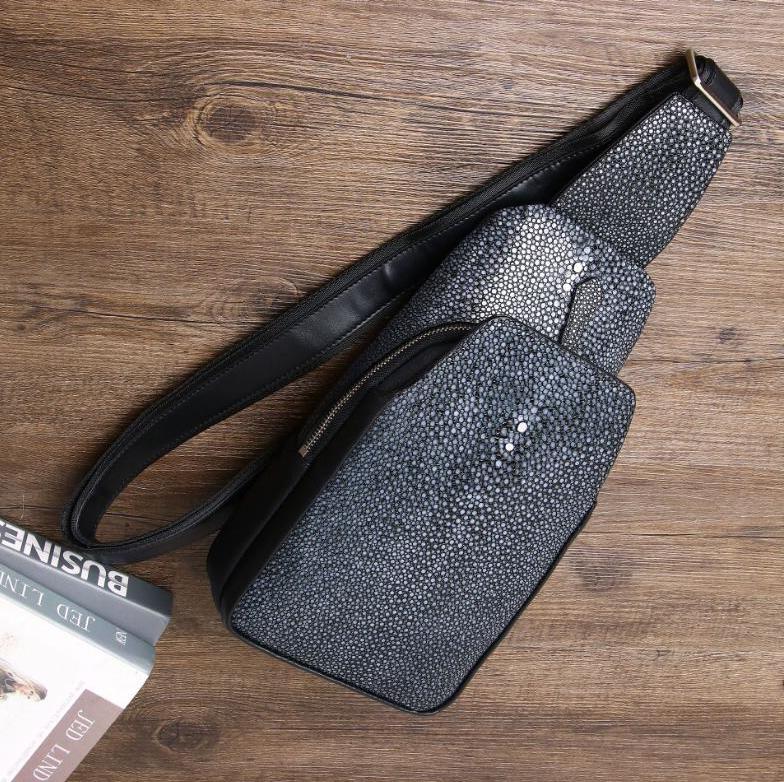 高品質 エイ革 ショルダーバッグ ガルーシャ スティングレイ ブラック黒メンズ 斜め掛け レザー本革 ポリッシュ加工 カバン 鞄