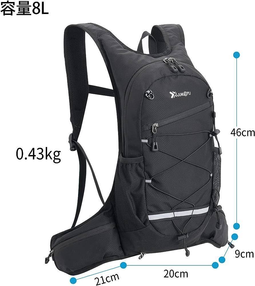 【軽量、大収納容量】:僅か430gで柔らかくて快適な自転車バッグパック。メインポケットは8Lハイドレーションが収納可。それ以外、左右のストラップに500mlペットボトルを収納できるポケットも付けています。