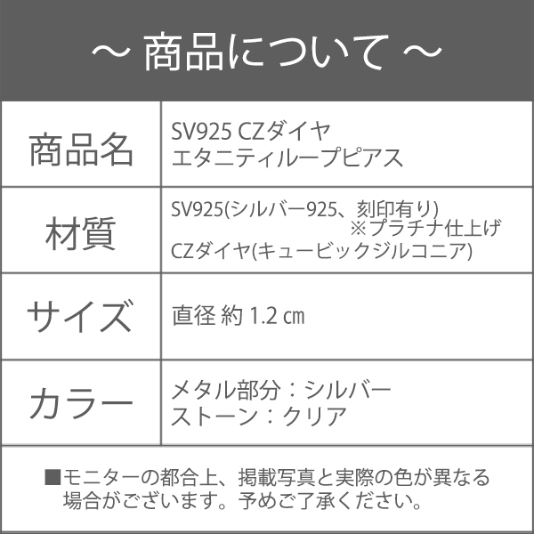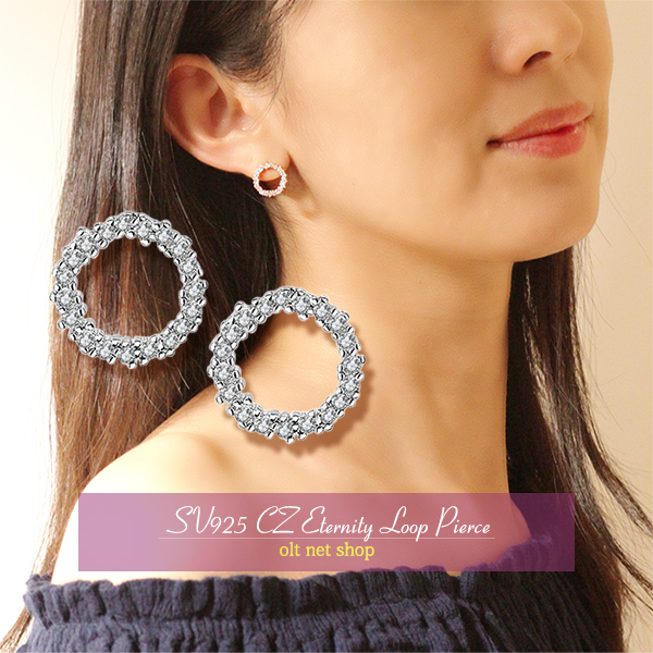 ピアス レディース ループ サークル 円 丸 ジルコニア シルバー シンプル 上品 プラチナ仕上げ 銀/ SV925 CZダイヤ エタニティループピアス