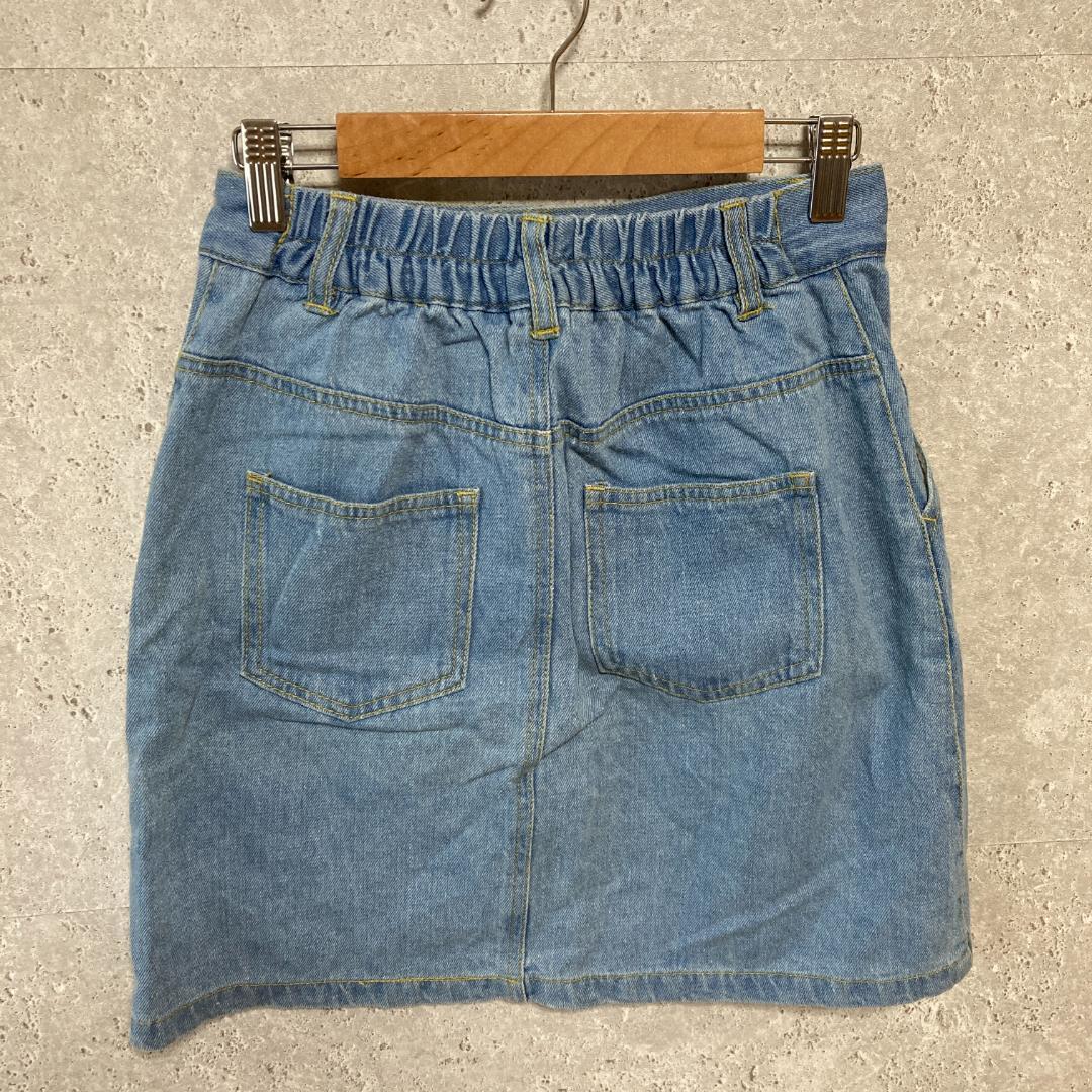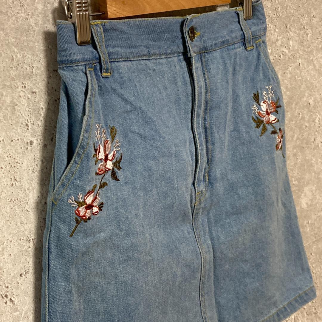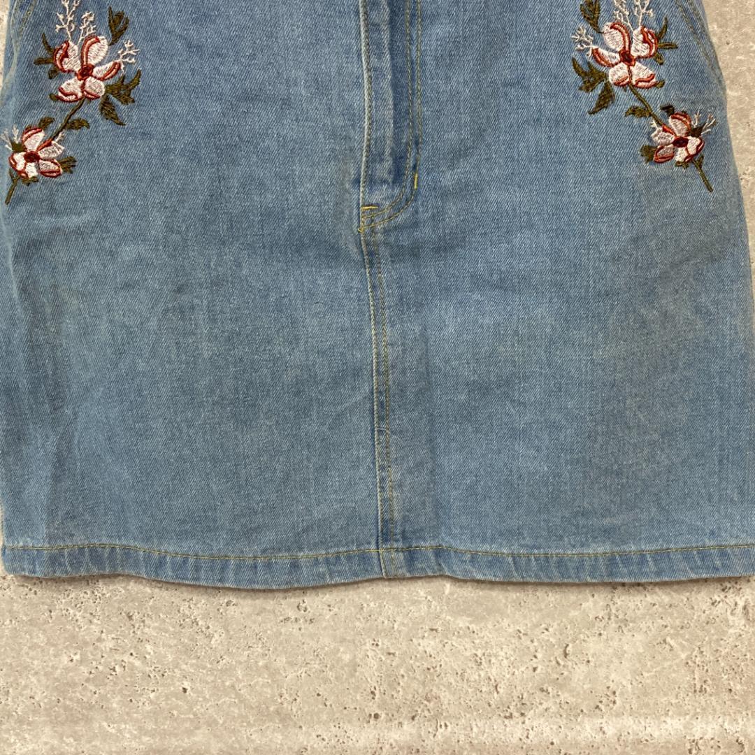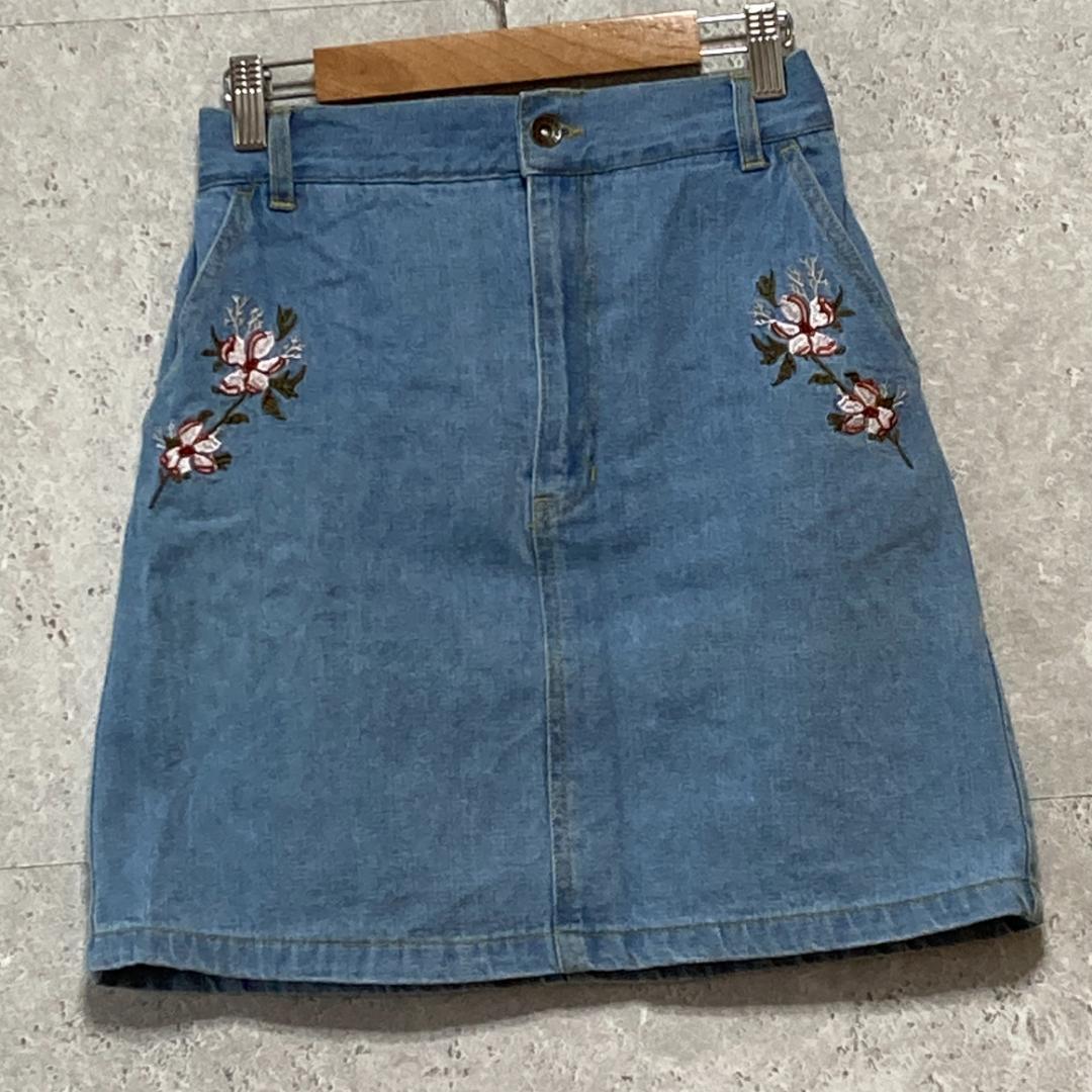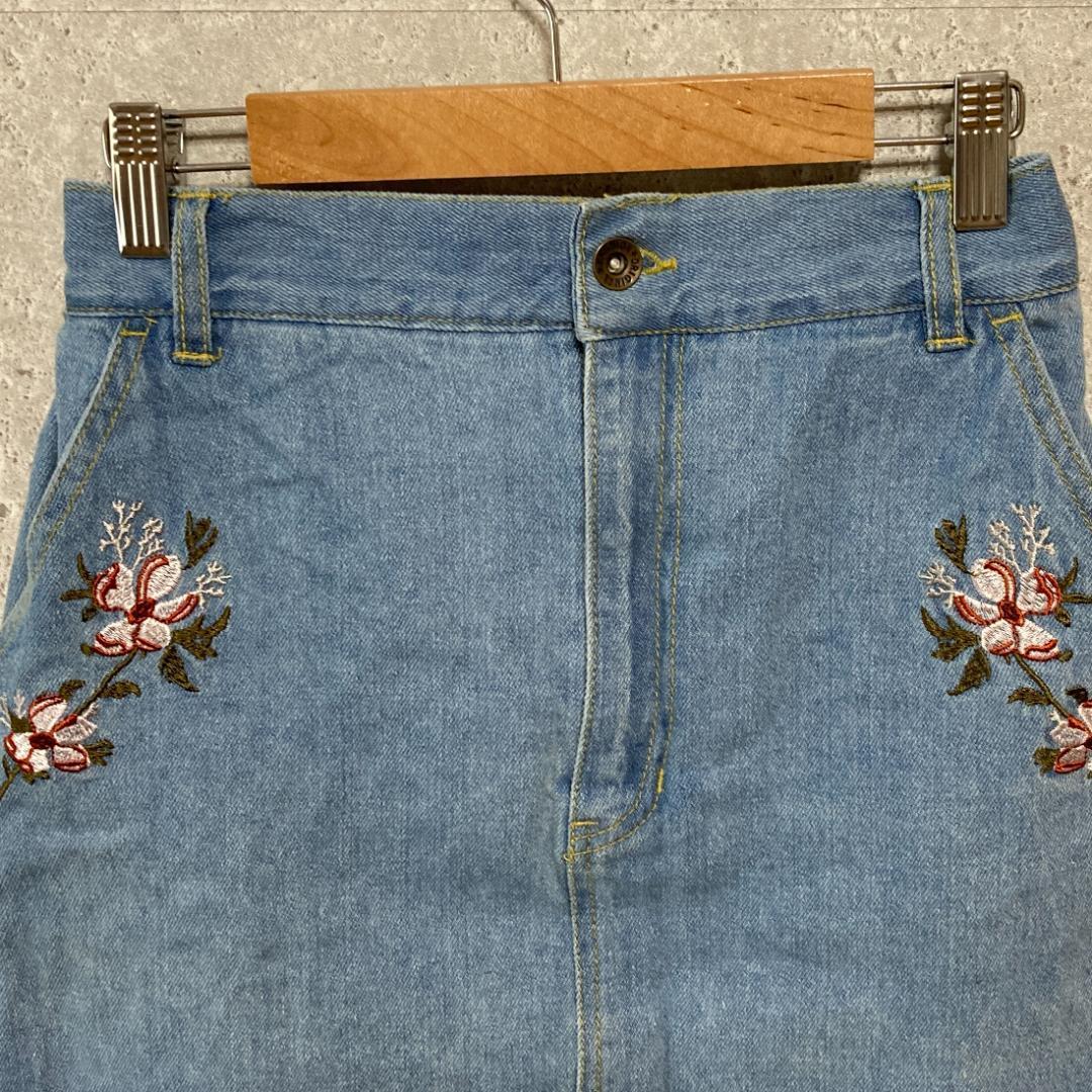 Gleeful(M)デニムミニスカート*花柄刺繍*綿100%*バックゴム*ブルー