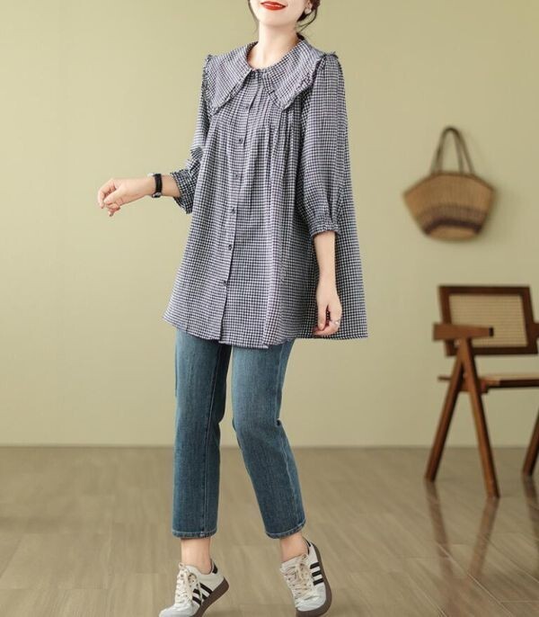 新品 秋 冬 M-4XLシャツ ブラウス レディース チュニック トップス ロングシャツ 長袖 春秋 aライン カジュアル風 チェック柄