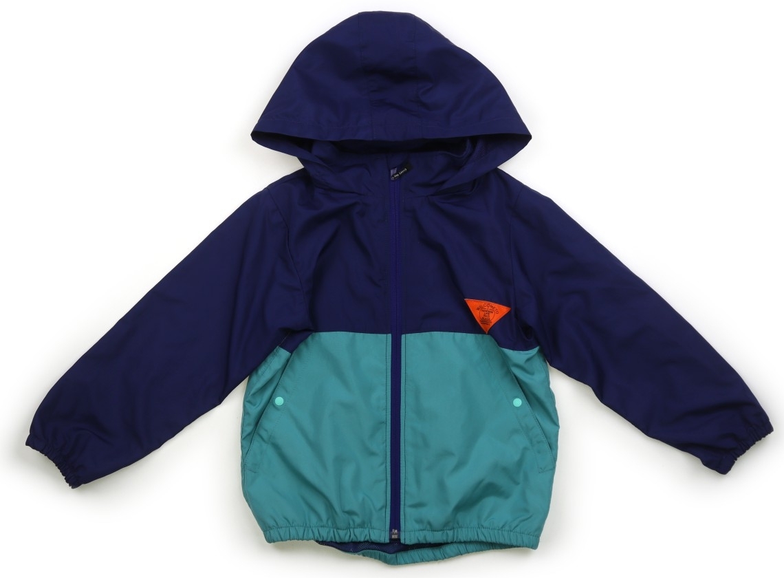 ポリエステル。メッシュ生地の裏地がついています。フードは襟の中にしまえます。使用感ありますがまだお使いいただけそうです。