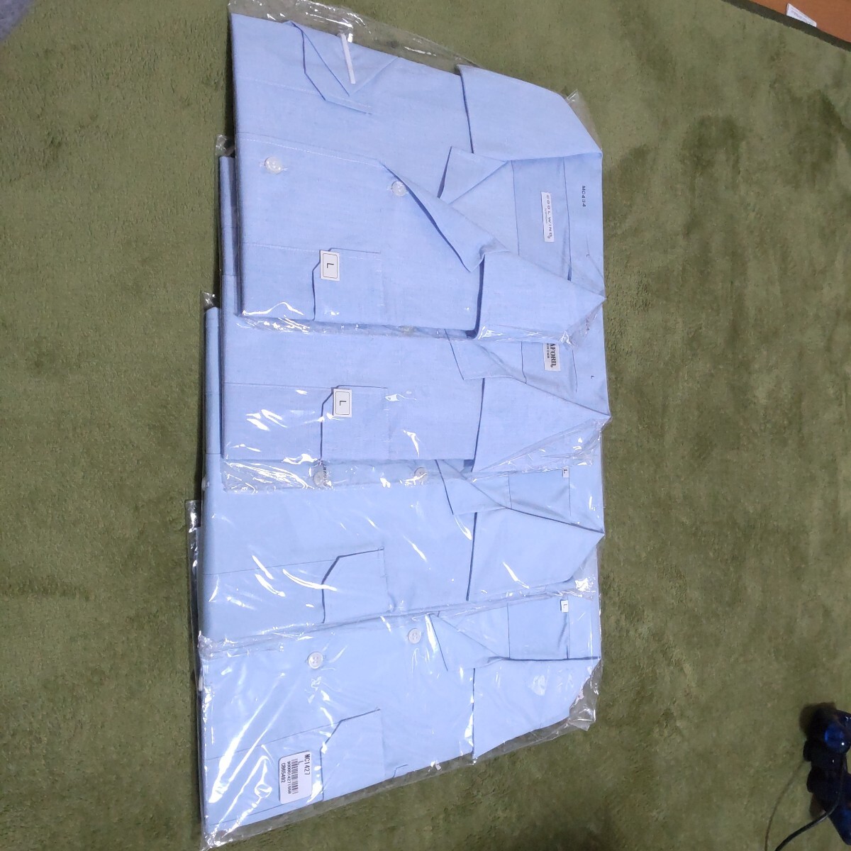 夏時期に着る、会社で支給される様なデザインの、開襟シャツ4着です。