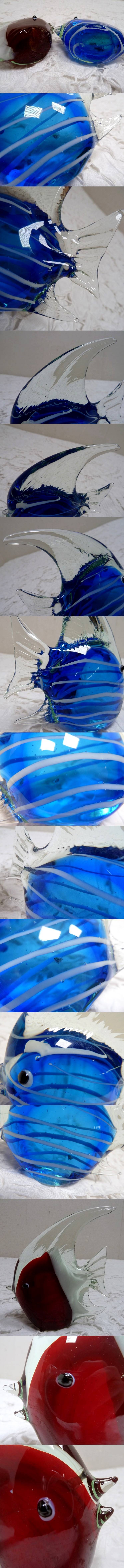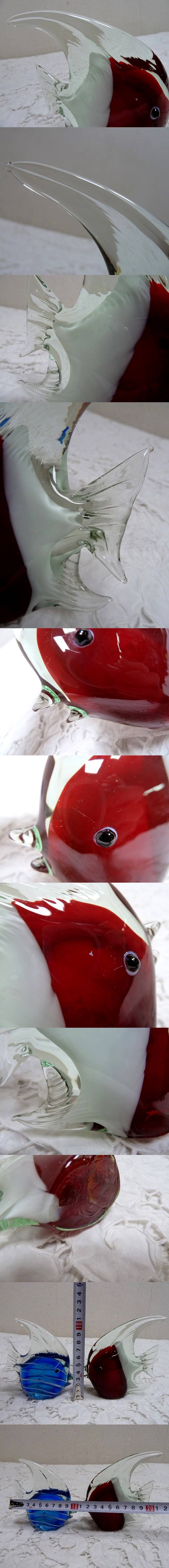 (☆BM)ガラス エンジェルフィッシュ オブジェ 2点 ガラス アート 魚 置物 チョウチョウウオ 赤/青 レッド/ブルー マリン エンゼル