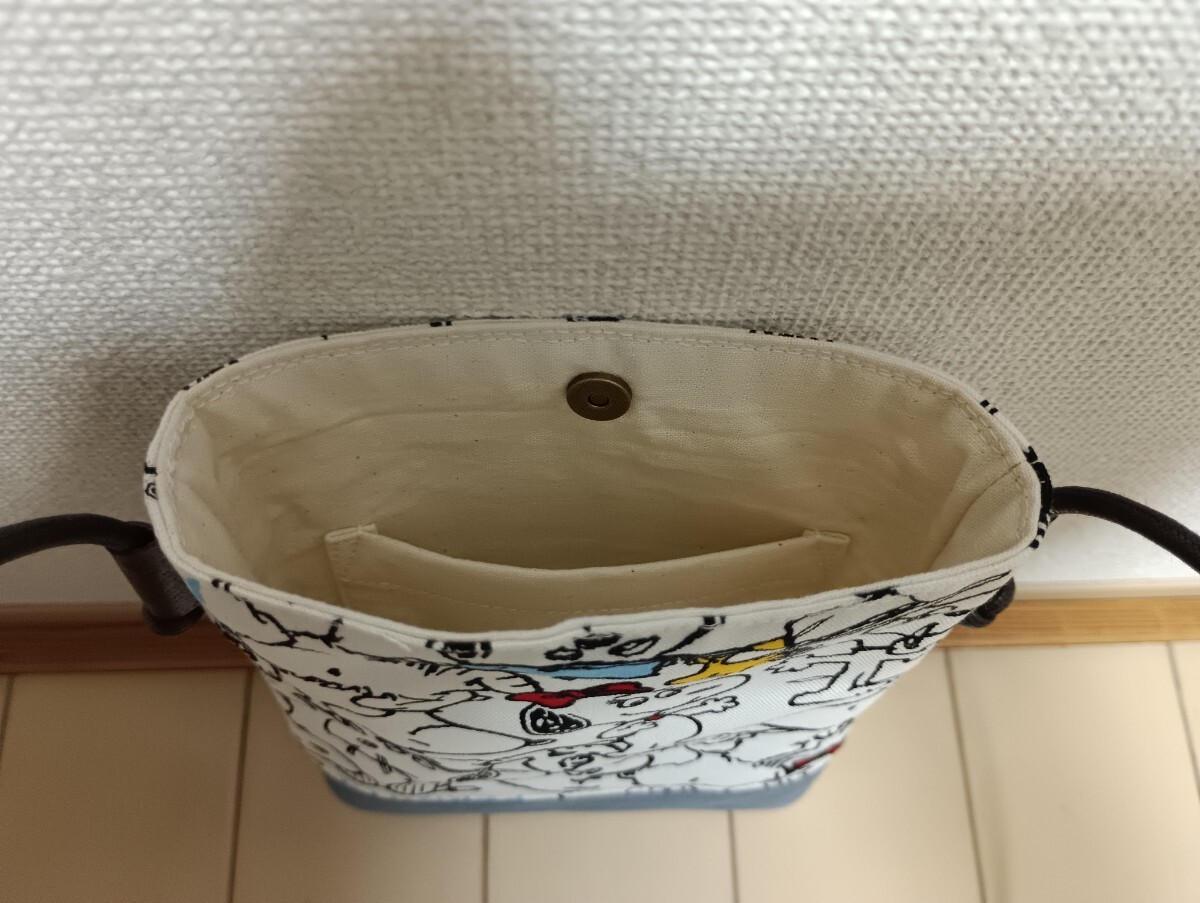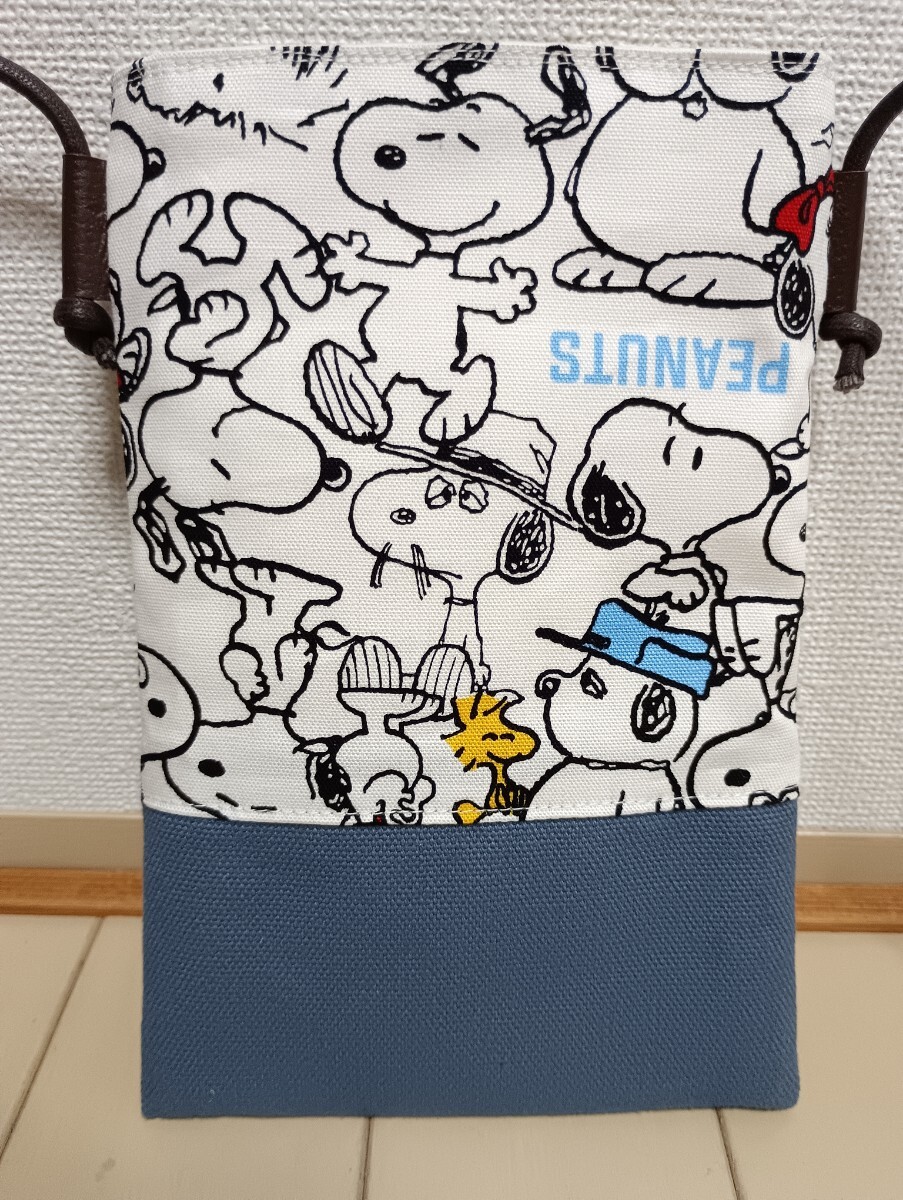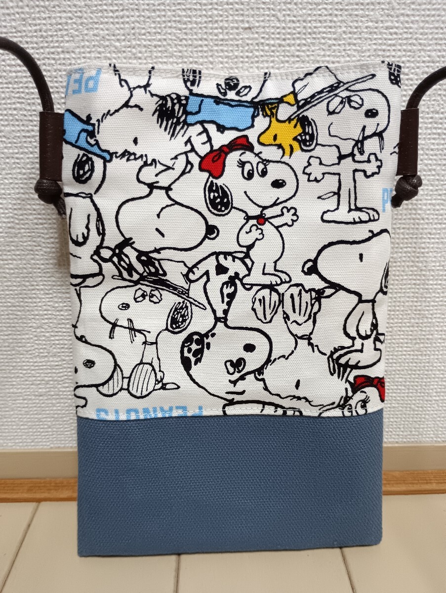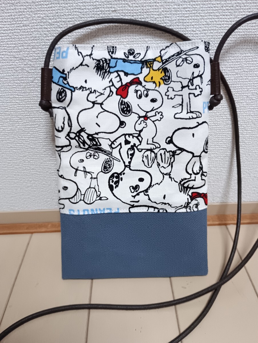 ☆ハンドメイド☆ブルー頒布&スヌーピー柄☆小さい ショルダーバッグ☆ポケット付き☆携帯ケース☆スマホショルダー☆スマホポーチ