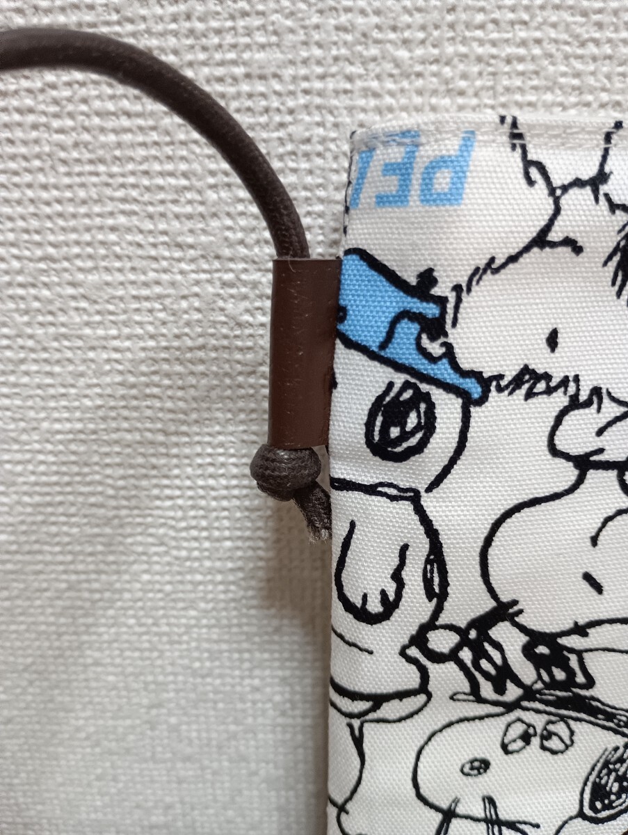 ハンドメイド  ブルー色 頒布生地&スヌーピー柄の小さい ショルダーバッグです。中は生成り生地でポケット付きで、マグネットボタンで留めれます。ショルダーは焦げ茶色4mmのワックスコード丸紐を使用し長さ調節できます。一番長くて約127cmです。