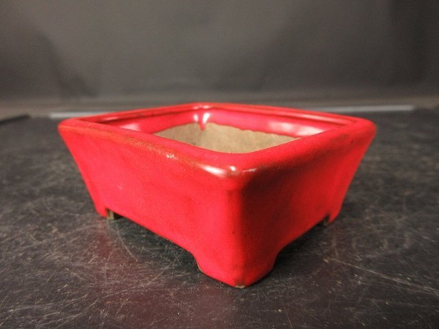 【盆栽 樂屋】◆天竜石仙 鶏血釉長方鉢 A15 (小品)(未使用)(人気作家)◆10/13