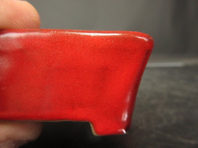 ご覧のような『天竜石仙 鶏血釉長方鉢 (小品)(未使用)(人気作家)』でございます。鑑賞用・使い鉢としていかがでしょうか。