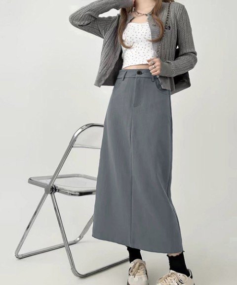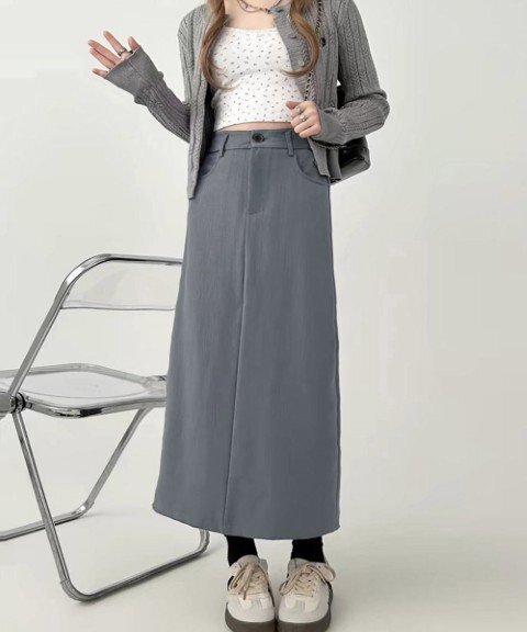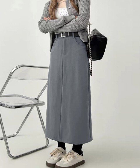 オールシーズン使える、バックスリット入りのロングスカートです。