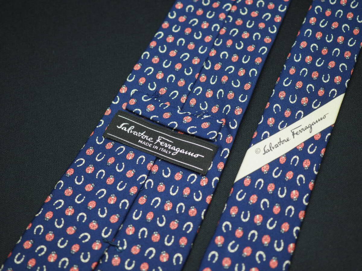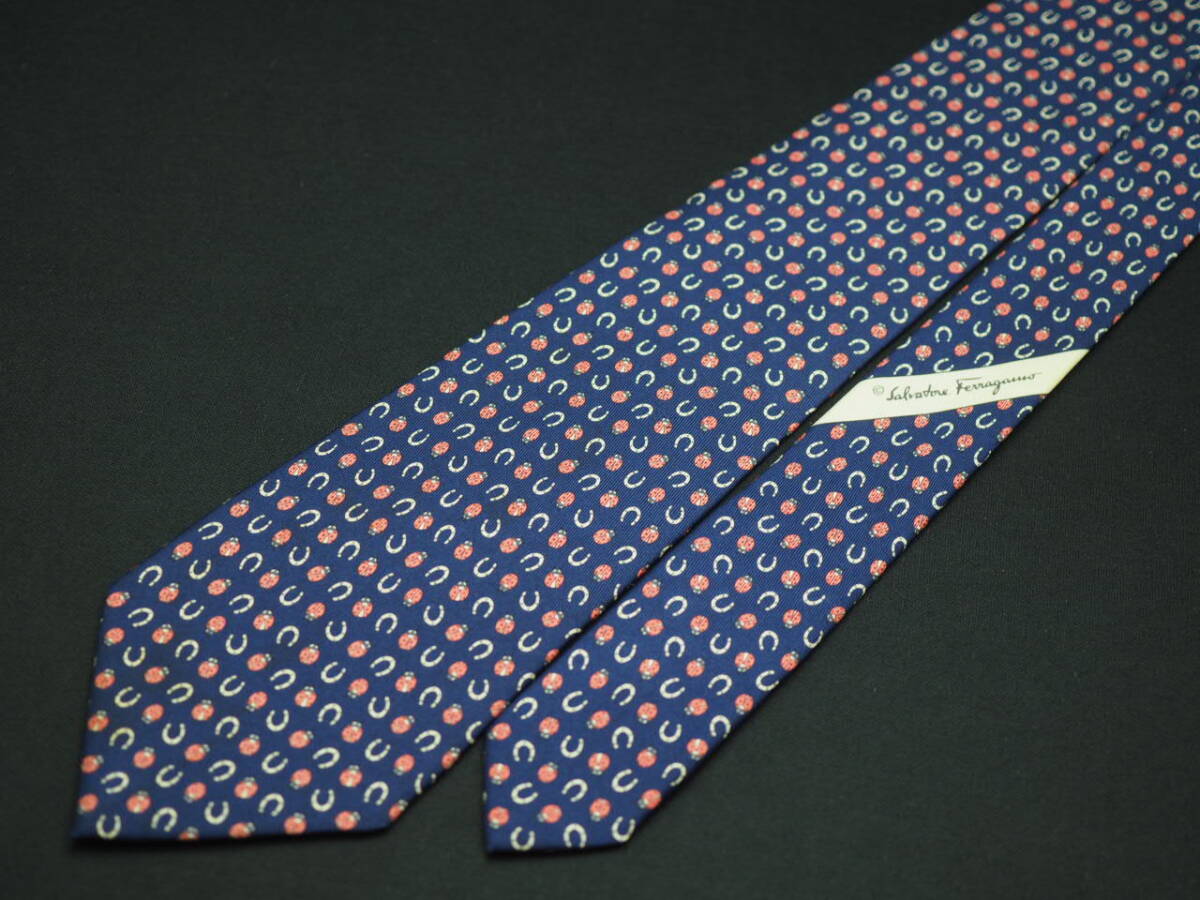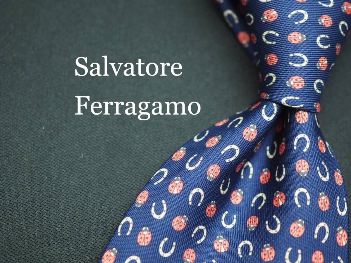 【Salvatore Ferragamo サルヴァトーレ フェラガモ】 F2642 ネイビー系 SILK ブランド ネクタイ 古着 良品 転売 仕入