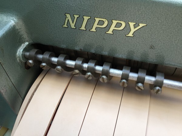 成牛(北米産ステア)のフルタンニンなめしの革をベルト裁断機でカットしたものです。