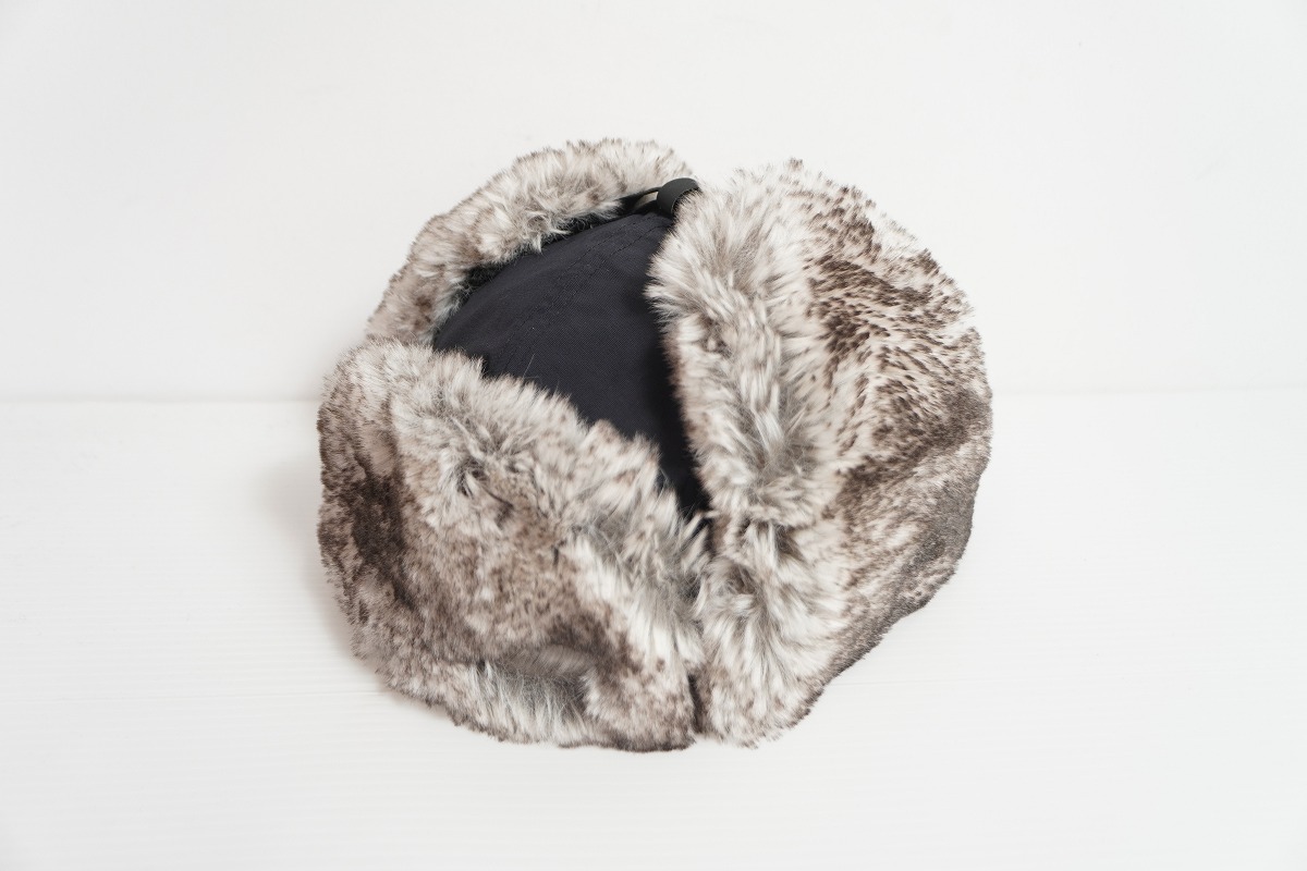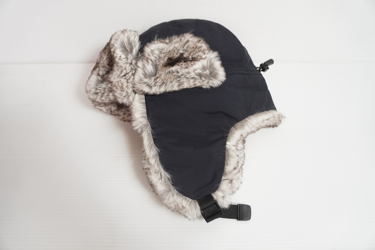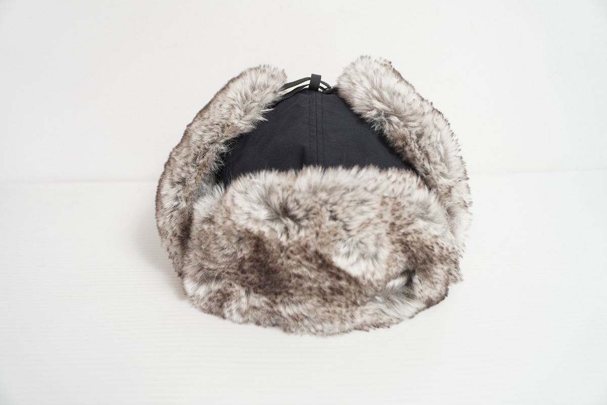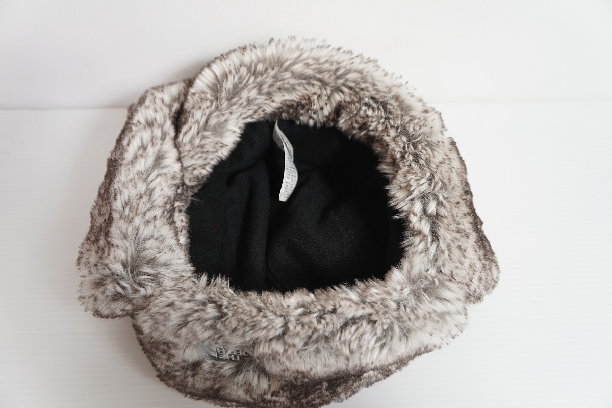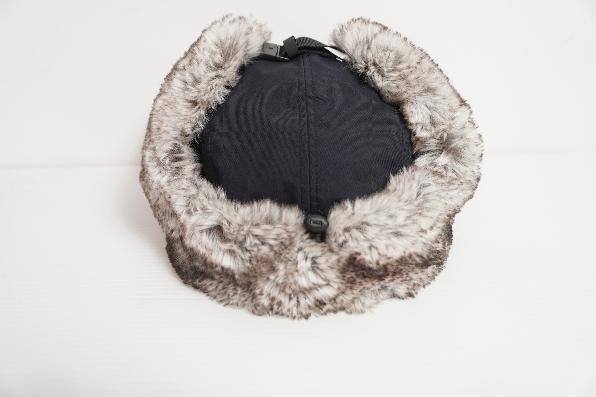 耳当て部分とツバ裏のリサイクルポリエステルのファーは、リアルファーのような色合いと肌触り。