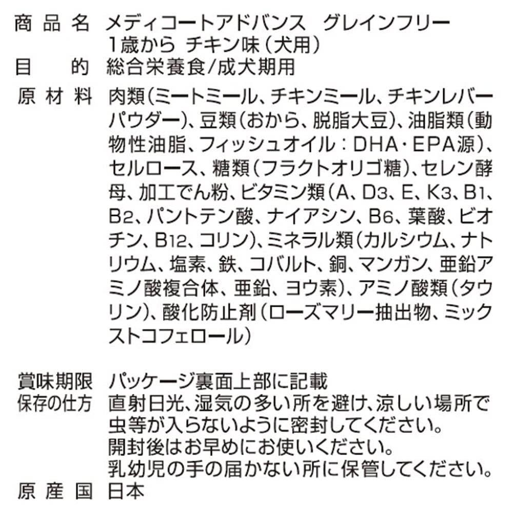 メディコートアドバンス グレインフリー 1歳から チキン味【国産/アルミ小分け】 6kg(500g×12)