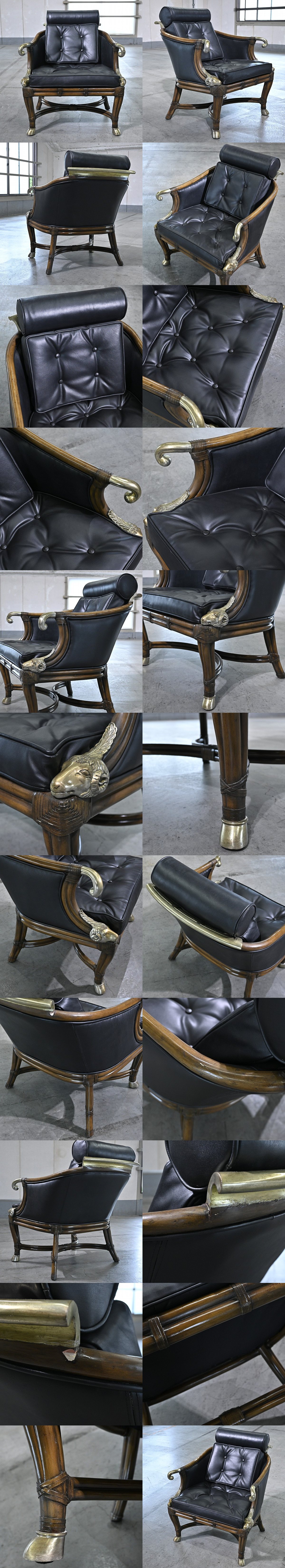 最大の特徴は、アームレストにあしらわれた真鍮製の羊の頭部装飾。