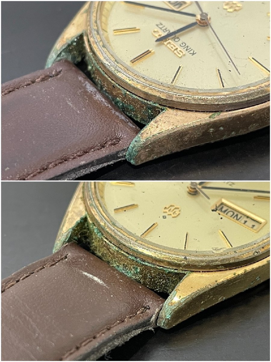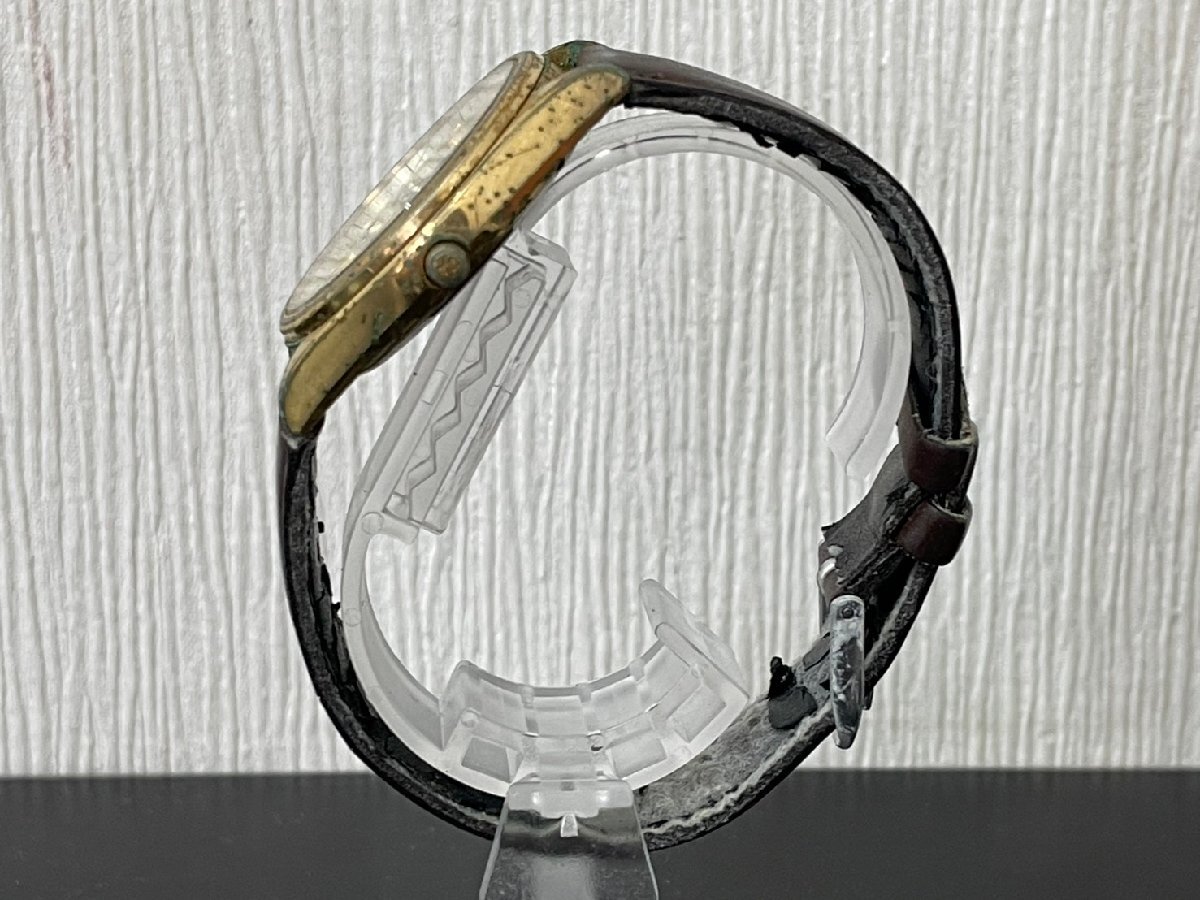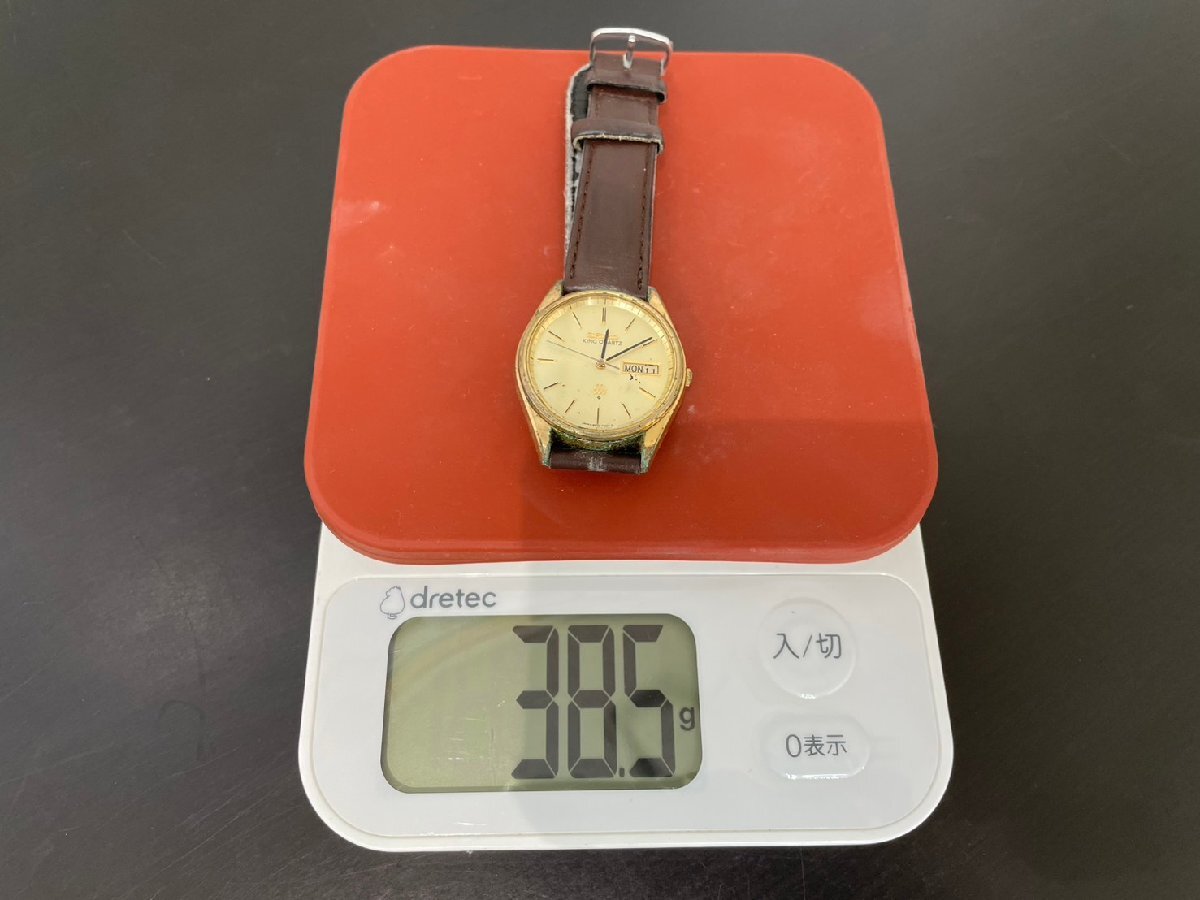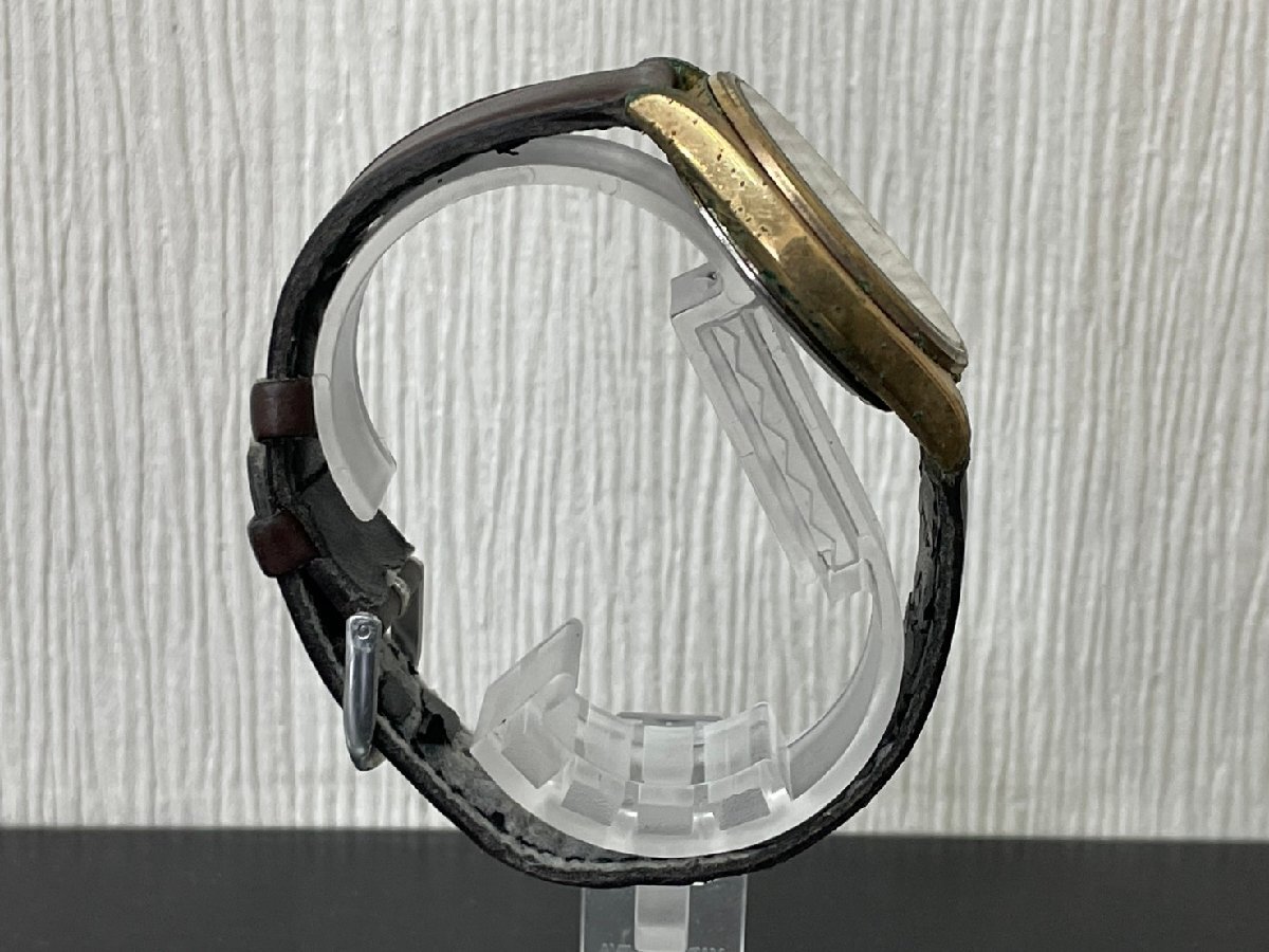 S111●SEIKO KING セイコーキング クォーツ ラウンド 腕時計 メンズ デイデイト ゴールド 9923-7028 茶ベルト●