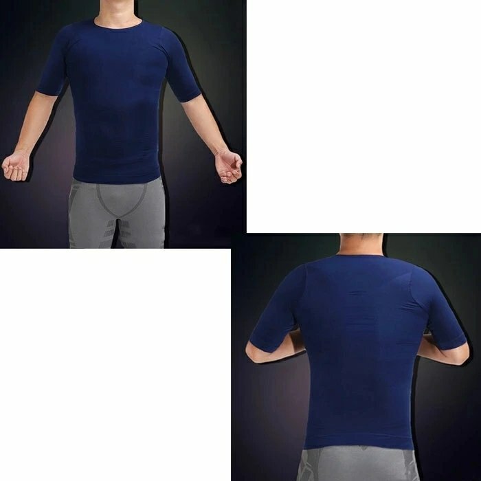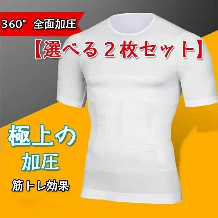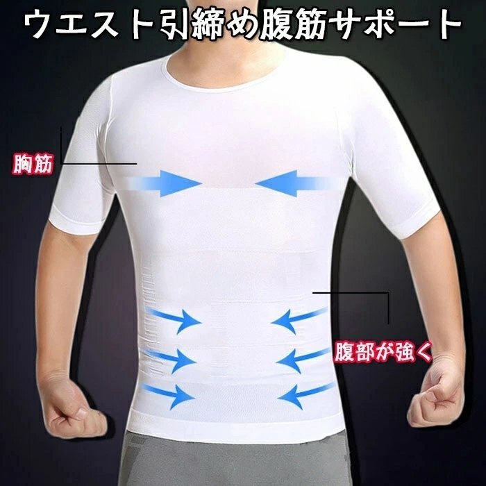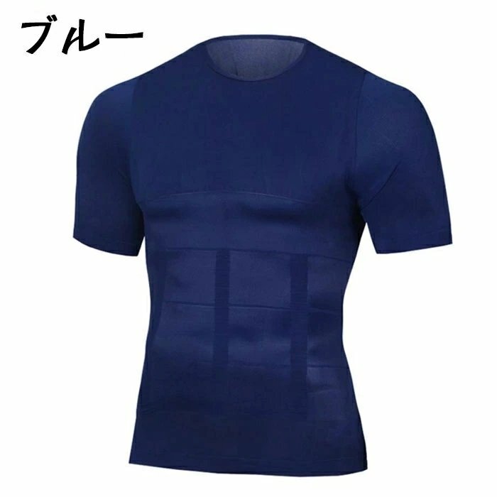 加圧シャツ メンズ 加圧インナー コンプレッションウェア 半袖 補正下着 ダイエット お腹 ウエスト 機能性 2枚セット S-XXL☆ブルー/1点