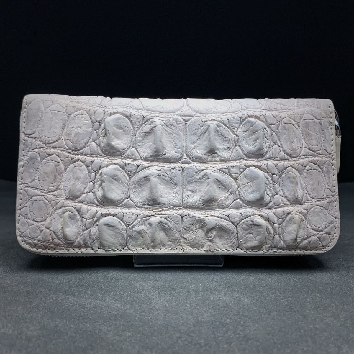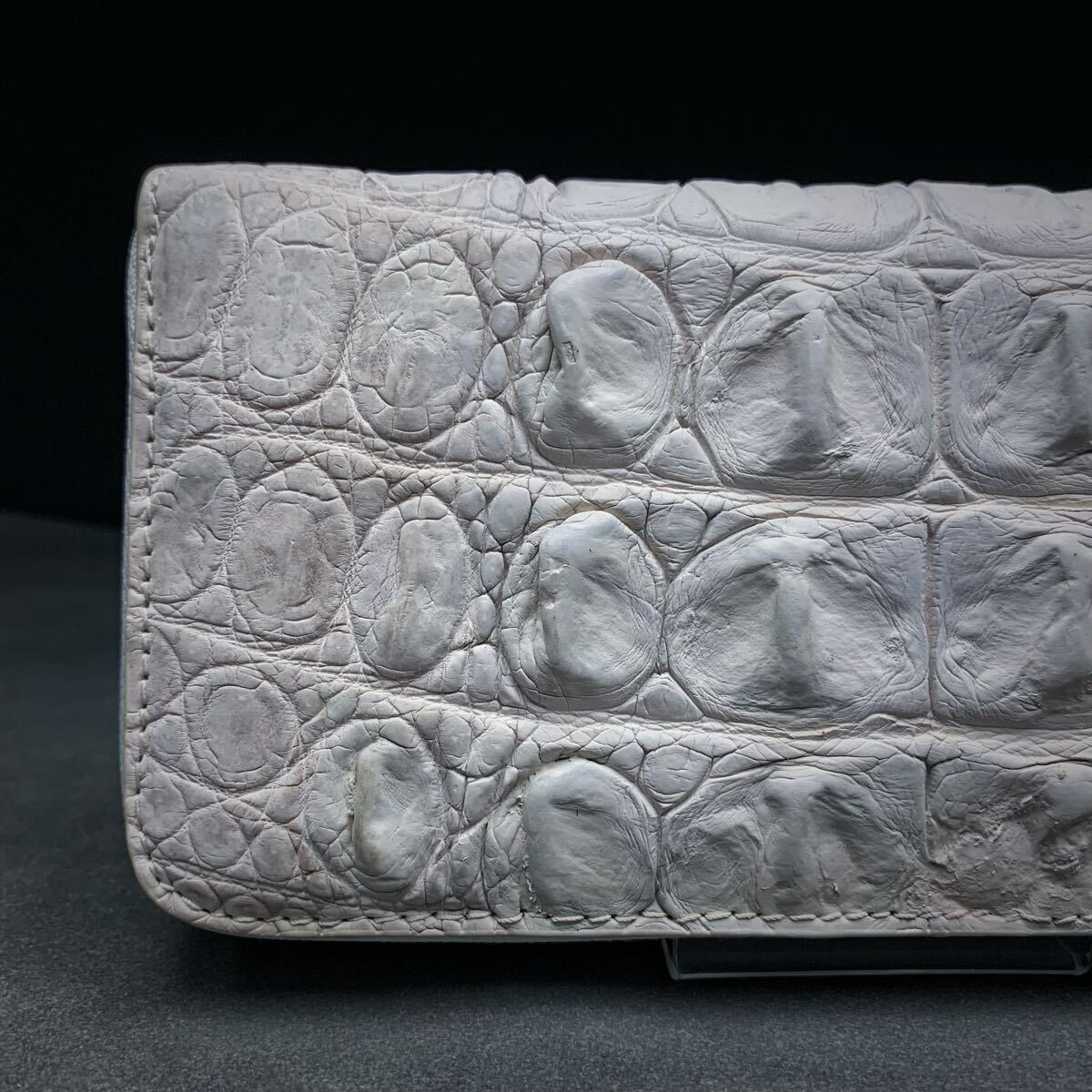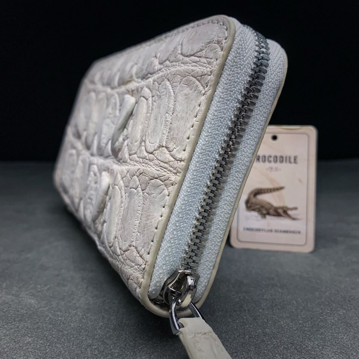 クロコダイルと呼ばれている品種のワニ革は人気が高く、独特の模様と凹凸が魅力で、高級ブランド品を中心にクロコダイルが多く使われています。今回はワニ革の代表格である<シャムクロコダイル>の背革部のラウンドファスナー財布を出品します。