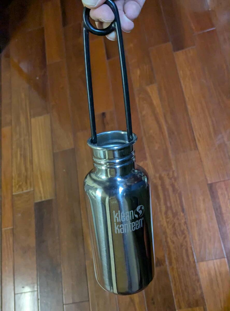 焚火などに直火でかけてお湯を沸かせます。トライポッドなどから吊り下げる取っ手をお付けします。取っ手の黒い部分はシリコンで熱に強くやけどしにくくなっています。ブッシュクラフトなどにいかがでしょうか。