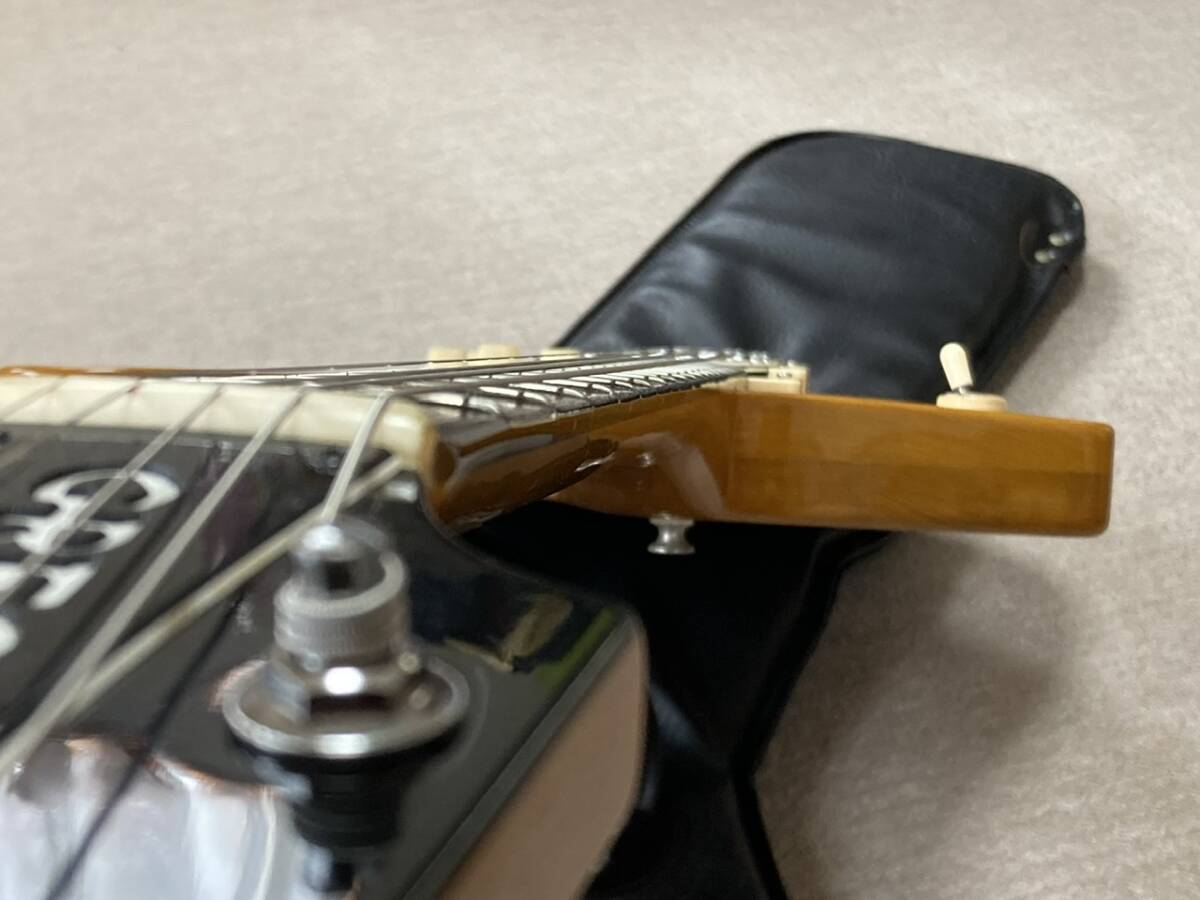 1978年式のM700です。変更部ありです。 ・PU、エスカッションが変更されている。 ・配線系統など引き直しされている。 ・ノブが変更されている。 ・ミニスイッチ系の穴を埋めた痕あり。 【状態】 ネックは、ほぼストレート状態。 フレットに弾き減り痕などあるが継続利用OK。 金属パーツに劣化感があるが輝きあり。 前後PU音出しOK。 ボディーにスレ、打傷などあるが目立つ大傷はない。 社外品ソフトケース(傷み/使用感、塗料の付着あり)。 弦は交換済み。本体簡易クリーニング済み。 現状です。70年代のヴィンテージギターです。 返品・クレーム不可。ご理解下さい。 | |||