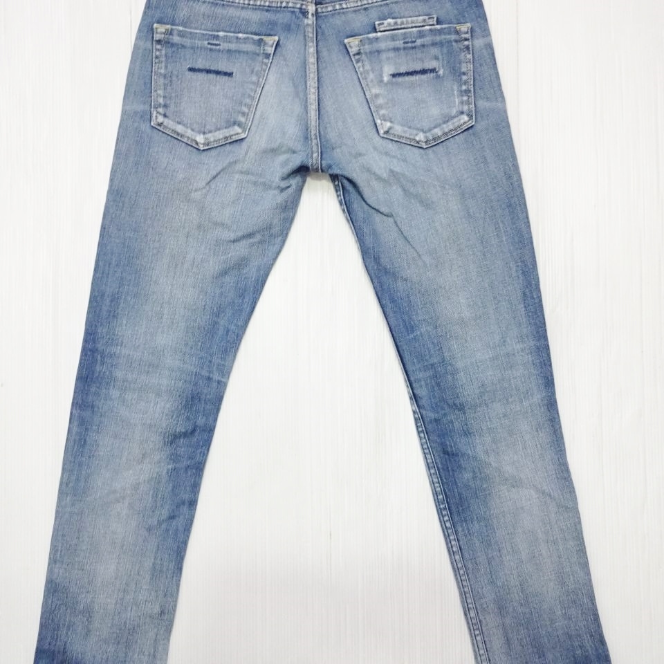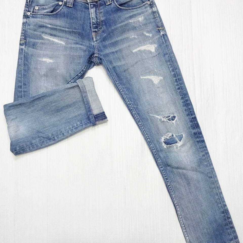 ◆ハードなUSED加工のライトブルーにクラッシュリペア加工の効いた、爽やか且つワイルドな1本です。