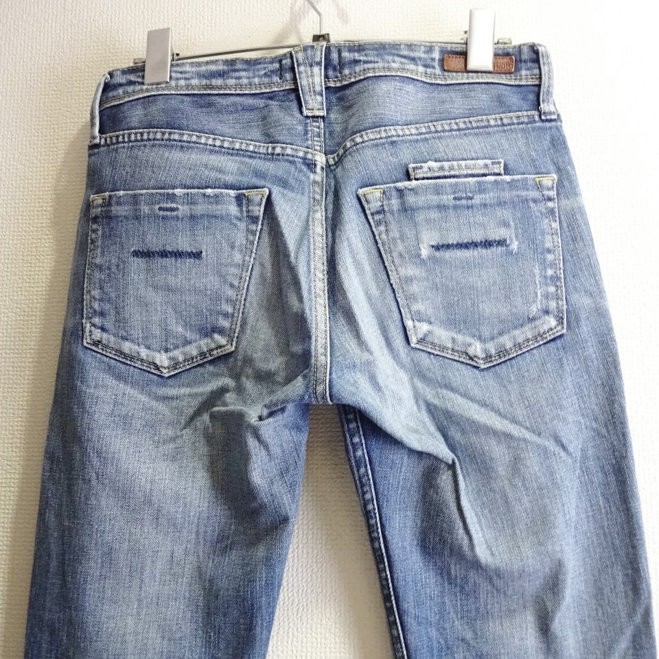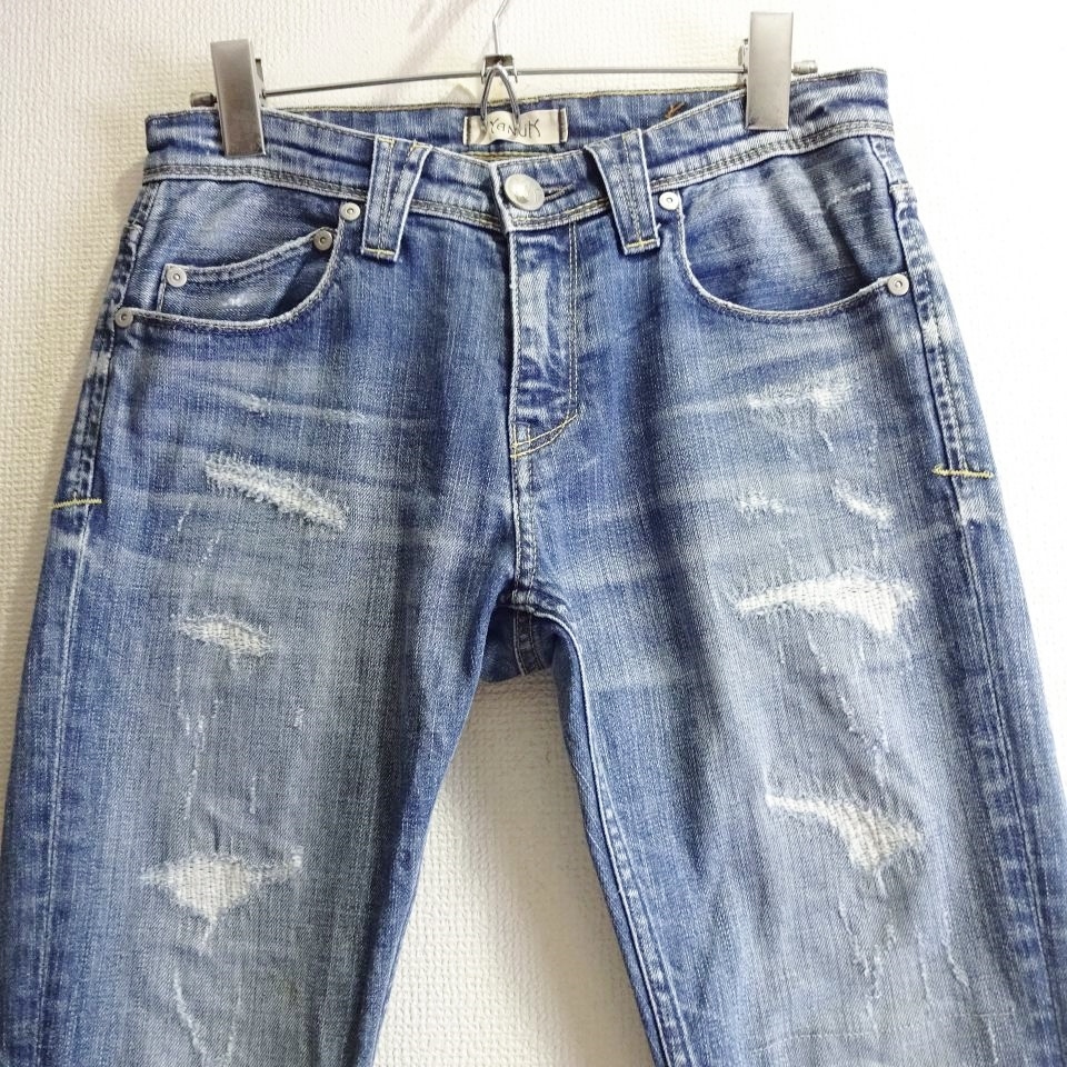 即決★ 送料無★ ヤヌーク Kay W72cm ストレッチ ボーイズスリムデニム レディース 明青 日本製 クラッシュリペア加工 23 J372