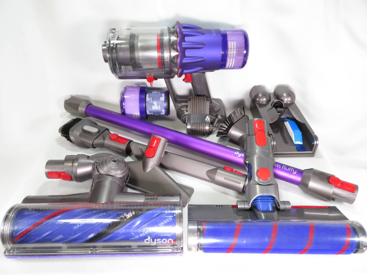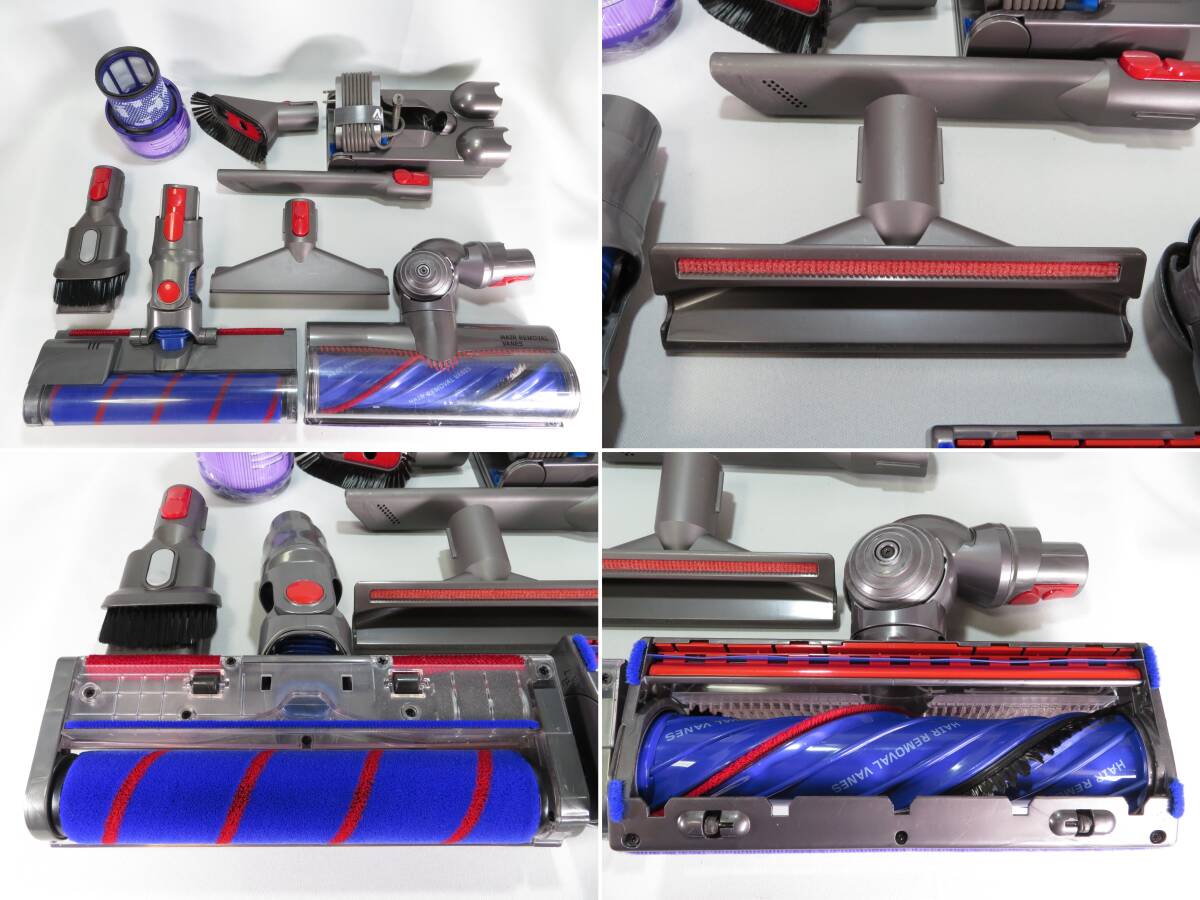 ・本体(分解清掃済み) ・充電器(純正) ・ロングパイプ(若干傷有 軽く清掃) ・HAIR REMOVAL VANES(毛絡み防止)ヘッド(分解清掃済み) ・ゴミ視認レーザー付ソフトローラーヘッド(美品 軽く清掃) ・その他アタッチメント類(画像に写っている物。モーター物以外は洗剤洗浄) |