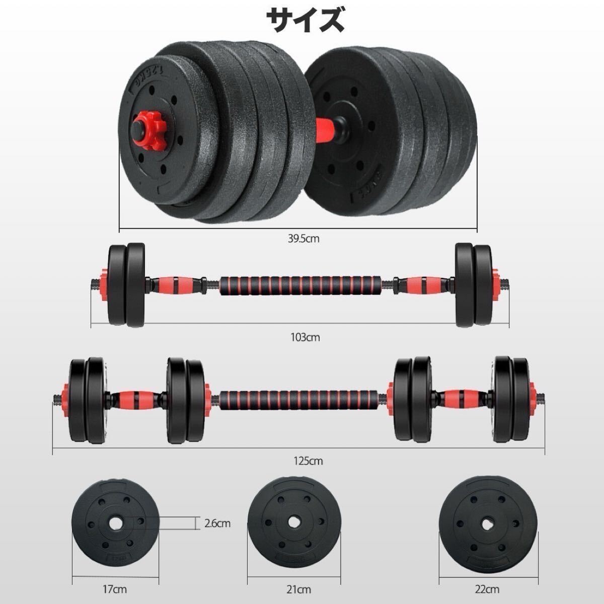 《仕様・機能》ダンベル バーベル 20kg 2個セット 可変式 バーベル可変 可変スピンロック式 プレート セット 重さ調整可能