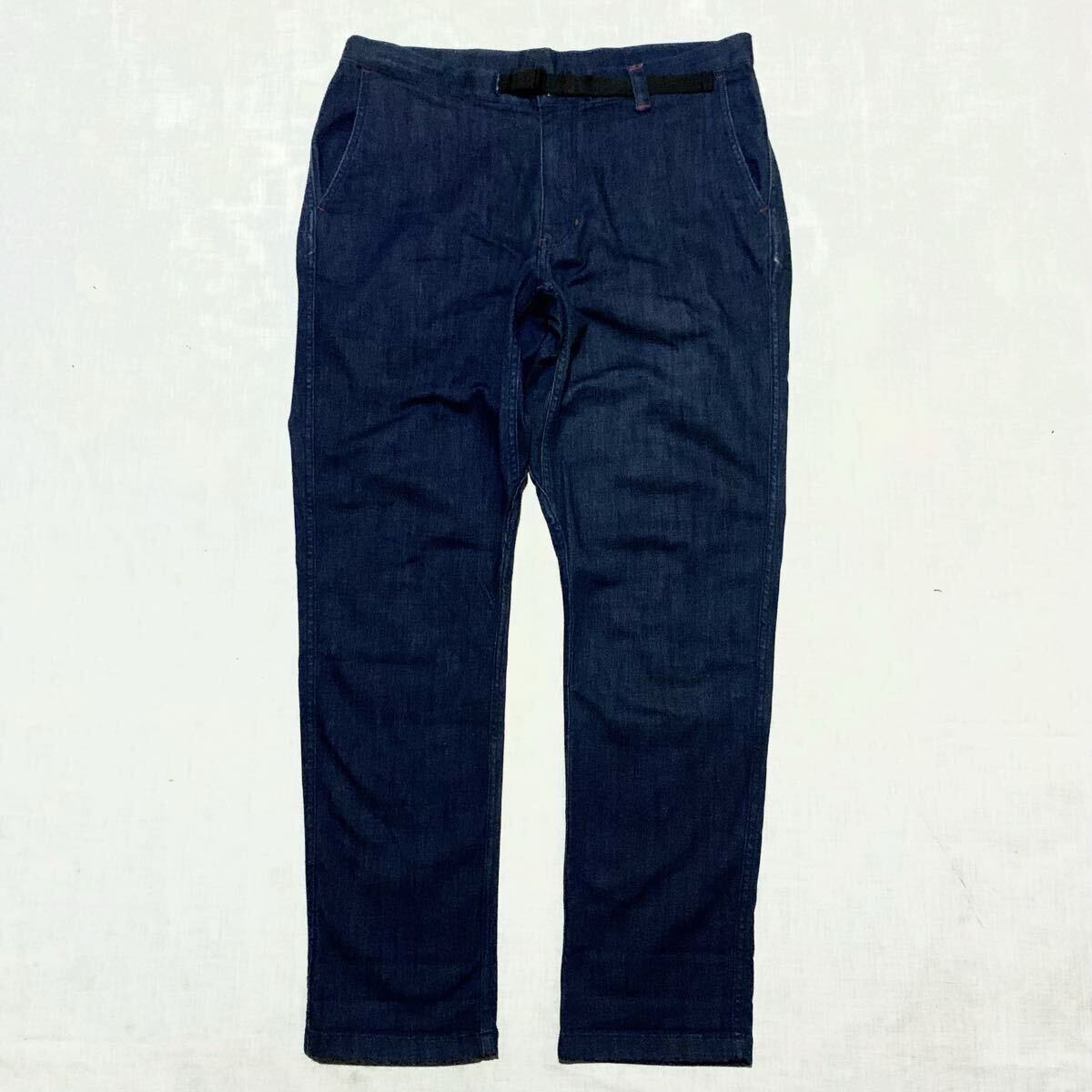 風合いのよいコットンに、耐摩耗性が高いコーデュラ(R)を混紡した、デニム地のクライミングパンツ。