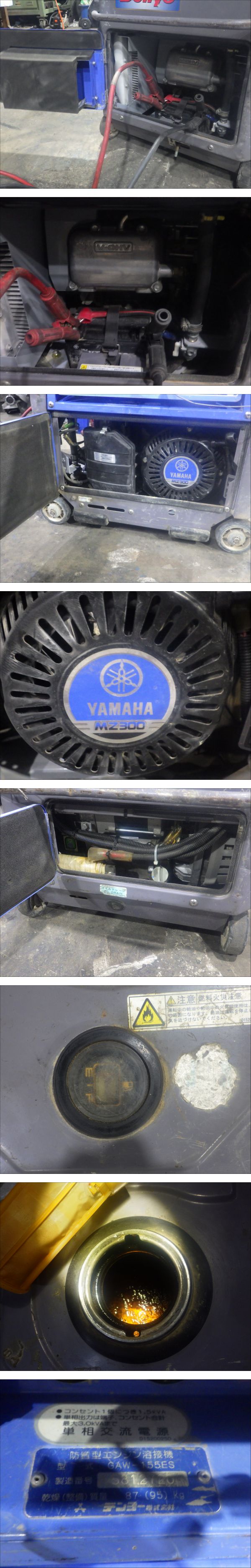 ■お願い■1人で運営していますので細かな対応できません 下記事項御協力よろしくお願いいたします ★不在の為、発送出来ない日があります 自己紹介より更新していますので御確認ください ★追加で気が付いたことあれば、更新しますので最後までご覧下さい ●メーカー:デンヨー ●商品名:溶接機 ●型式:GAW-155ES ●単相交流電源 ●定格出力:3.0kVA ●周波数:50/60Hz ●定格電圧:100V ●直流溶接用電源 ●定格出力:3.58kW ●定格電流:140A ●定格電圧:25.6V ●溶接電流範囲:30~155 ●定格使用率:50 ●適用溶接棒:φ2.0~3.2 ●幅×奥行×高さ(mm):687×494×630 ●質量 87 kg 画像にある物が全てになります。(商品に関係ない物は含まれません) 性能は銘板、およびホームページ等にて御確認ください ■整備内容■ 軽清掃、 ■確認内容■ セル回転により、エンジン始動、発電、溶接、アイドリングストップ等、問題ありませんでした。 バッテリーNGです。 1191時間 使用に伴う汚れ等がありますが、目立つダメージはありません。多少の凹みあります。 詳細や状態は画像にてご確認ください。 ■その他、個人的主観■ 詳しくありませんが、御質問いただければ分かる範囲で確認いたします 商品の性質上、使用に伴う傷汚れ等あります 神経質な方は、入札御遠慮下さい | |||