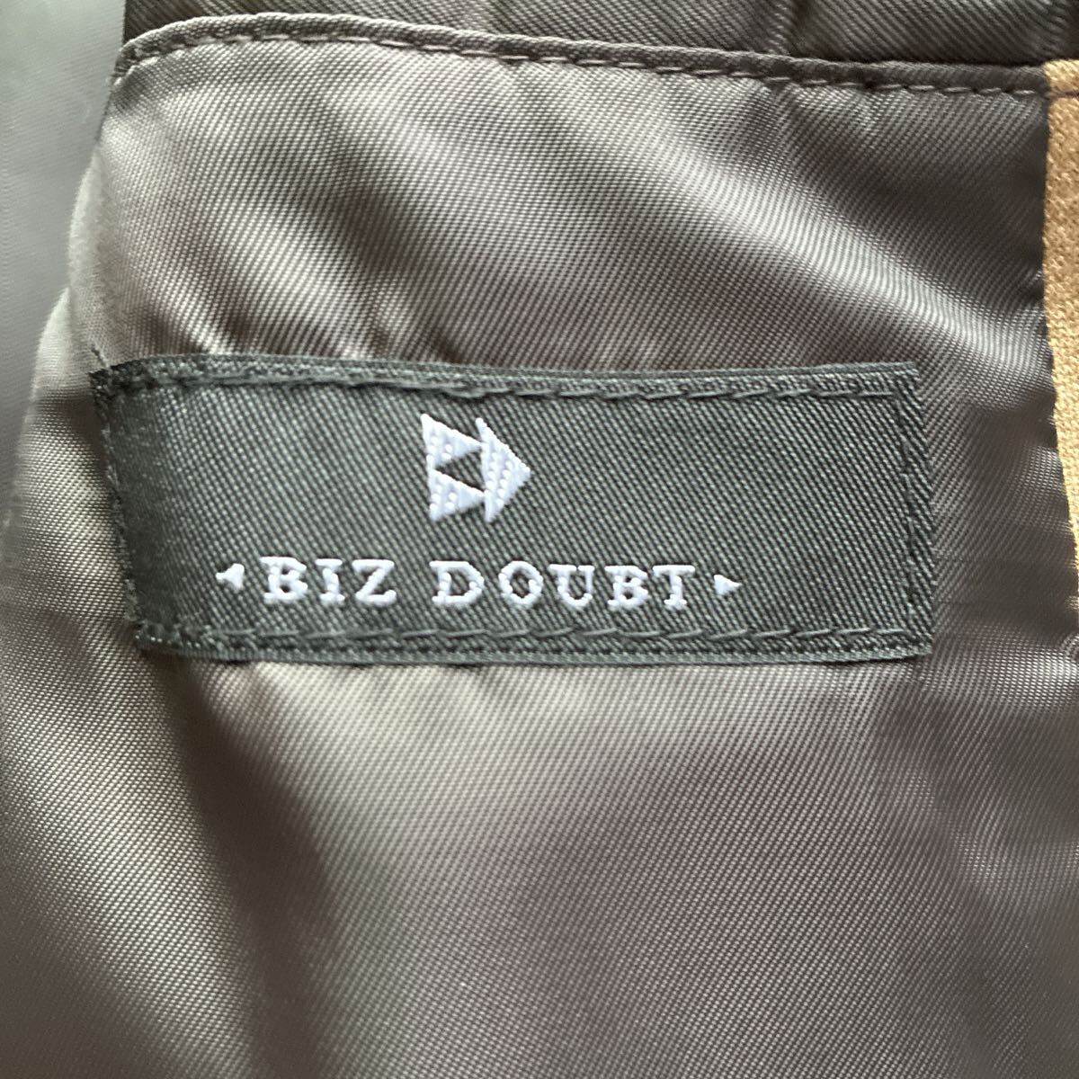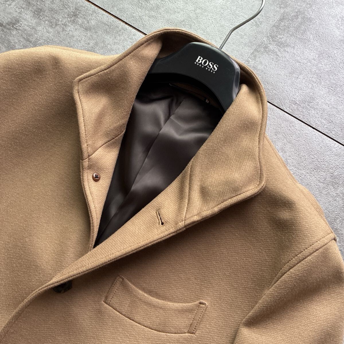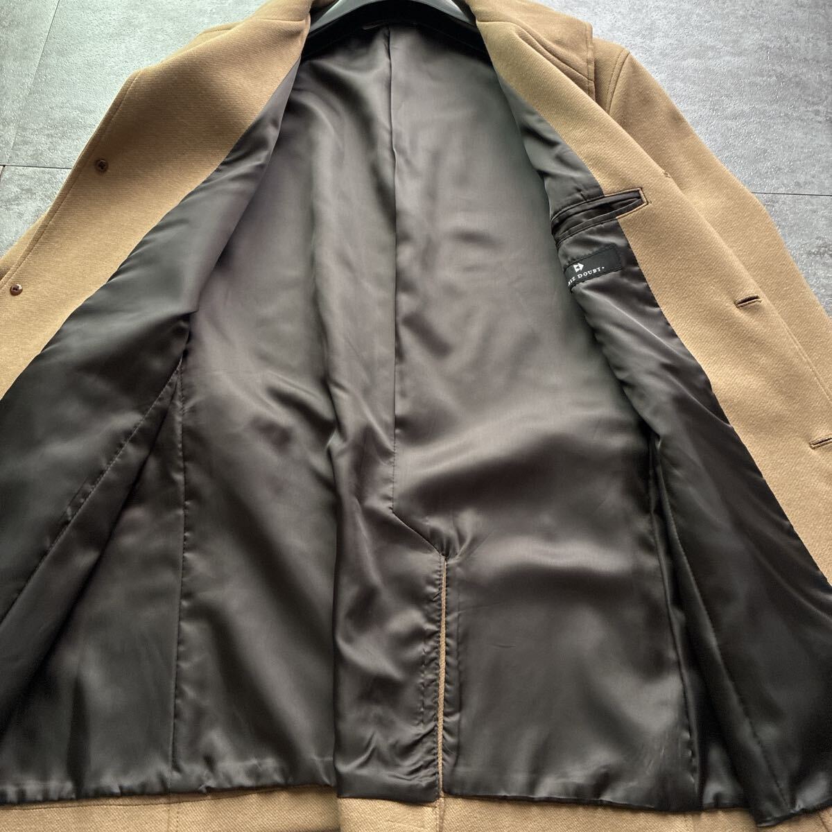 BIZ DOUBT(ビズダウト)のジャケットコートです。落ち着いたキャメルベージュカラーで、ビジネスからカジュアルまで幅広く対応できる万能アイテムです。