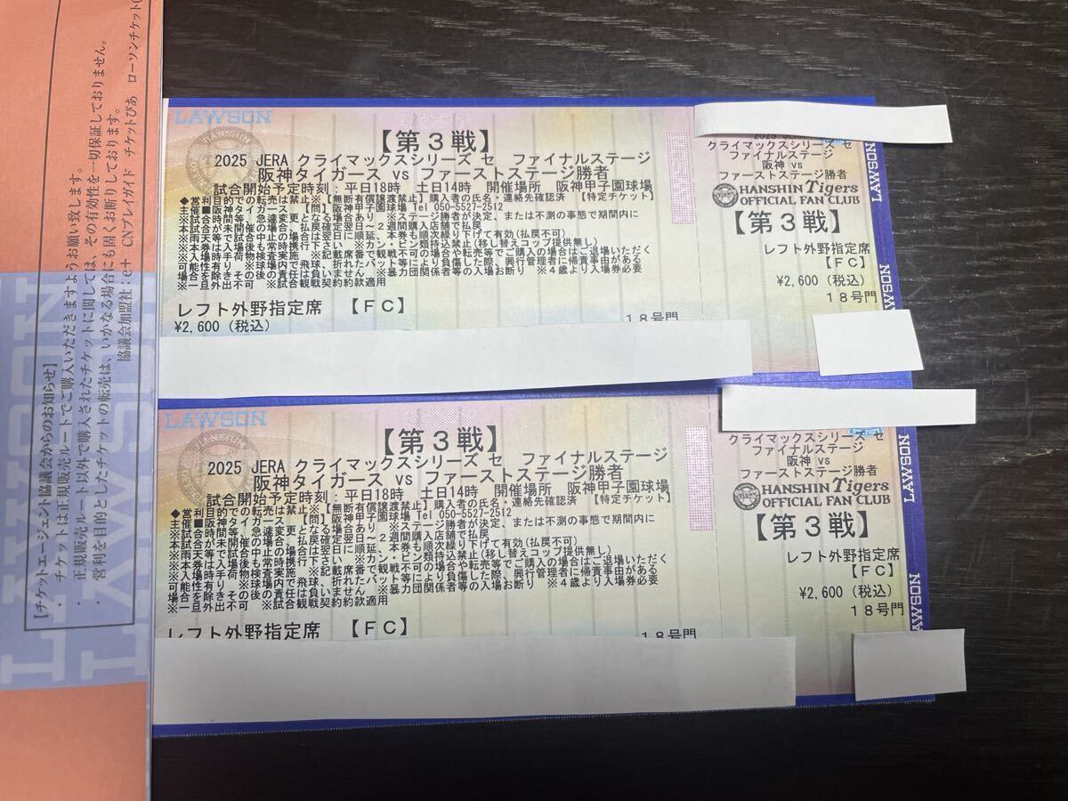 【第3戦】10/17(金)クライマックスシリーズファイナル 阪神タイガース レフト外野指定席 35段200番201番ペアチケットです。