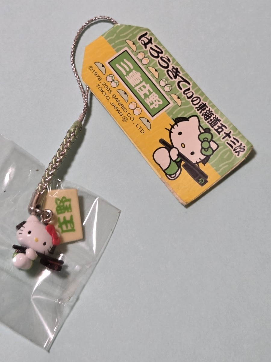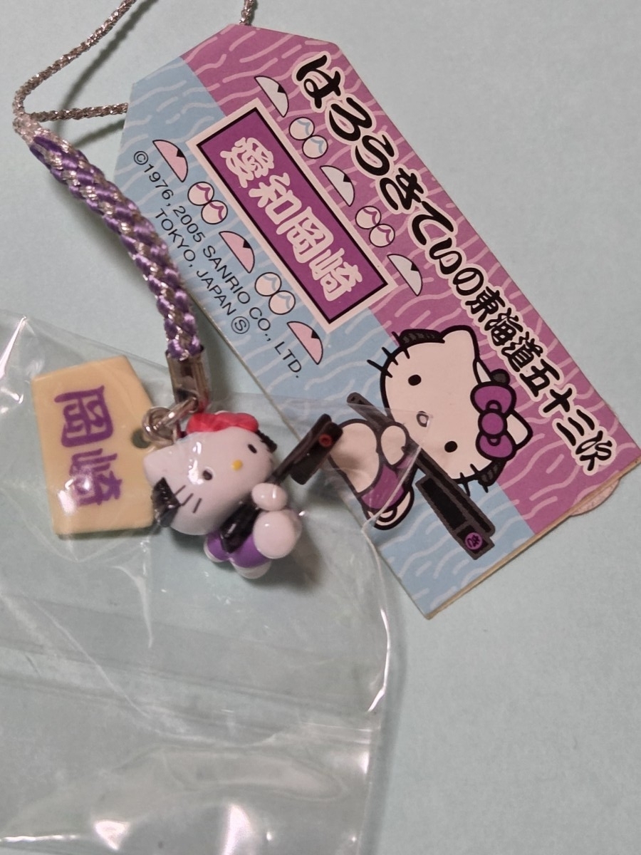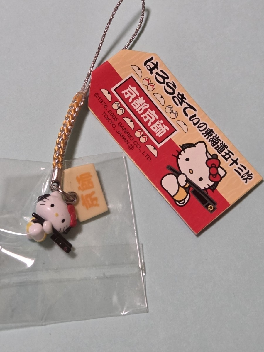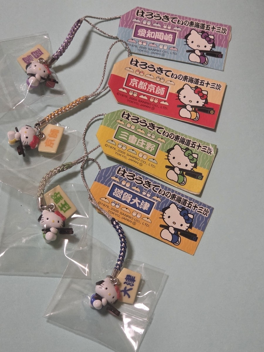 【0466】キティ 根付◇◇2005◇東海道五十三次◆4種類★愛知岡崎 滋賀大津 三重庄野 京都京師★ご当地 根付け サンリオ ストラップ