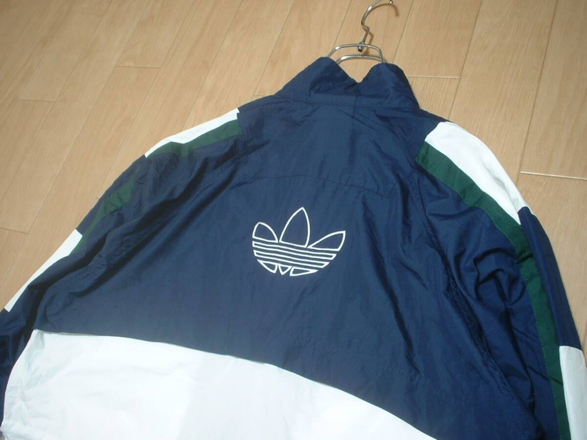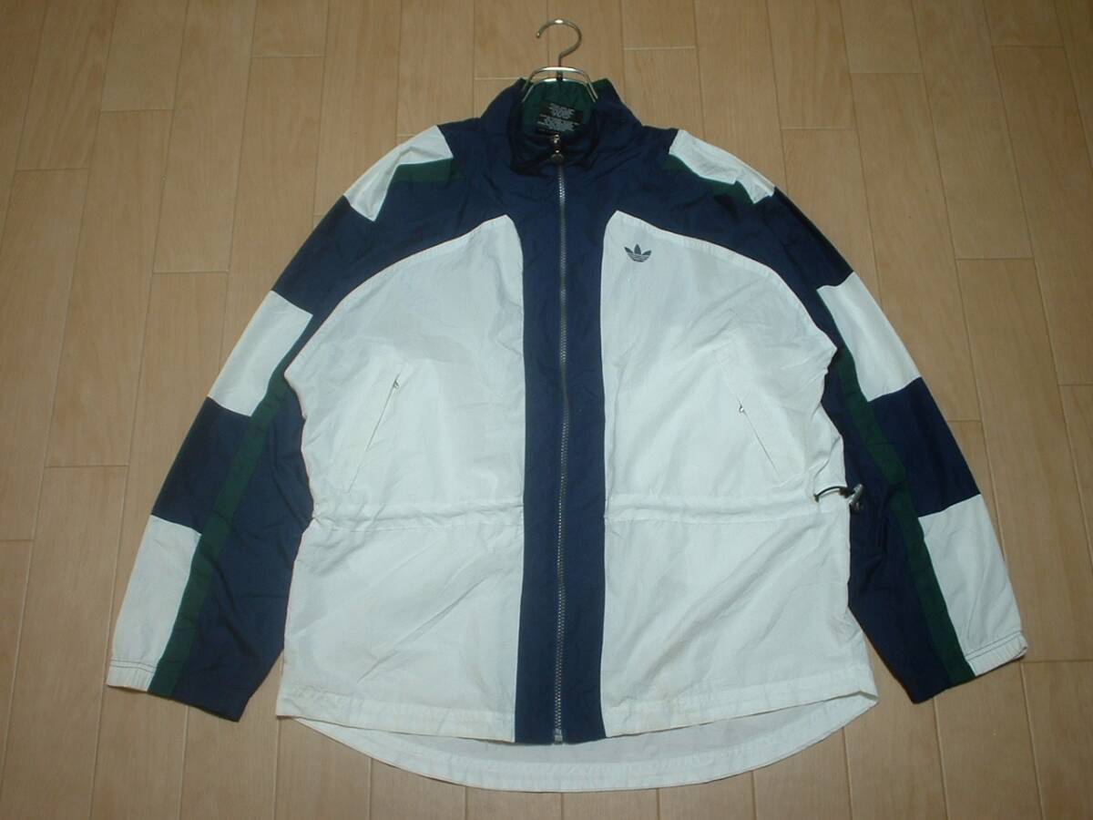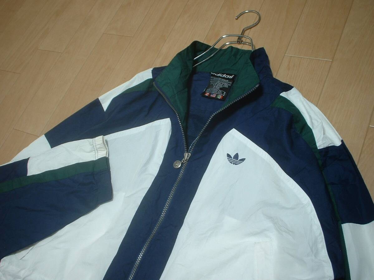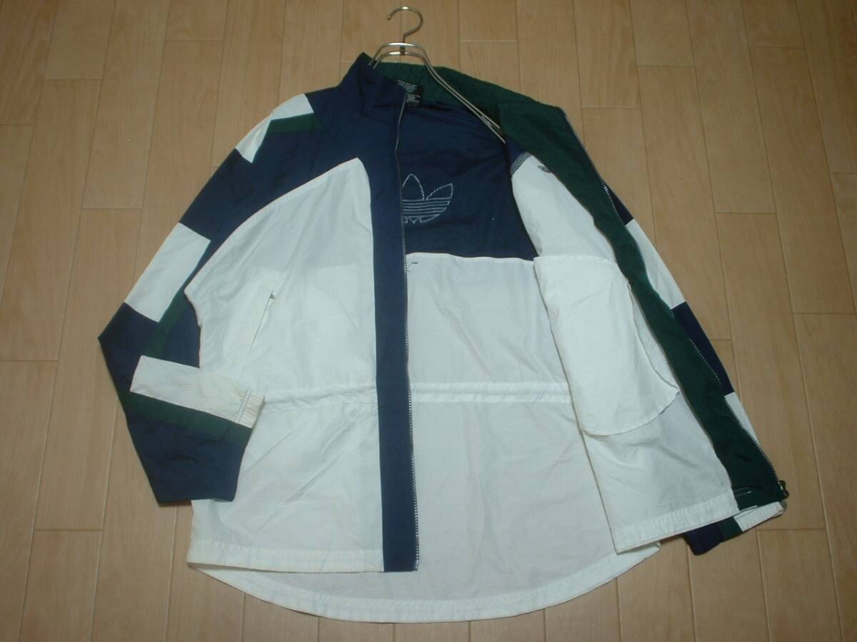 90sビンテージadidasマルチカラーナイロンジャケットM両面刺繍トレフォイル正規アディダストラックウインドジャージトップ万国旗タグカバー
