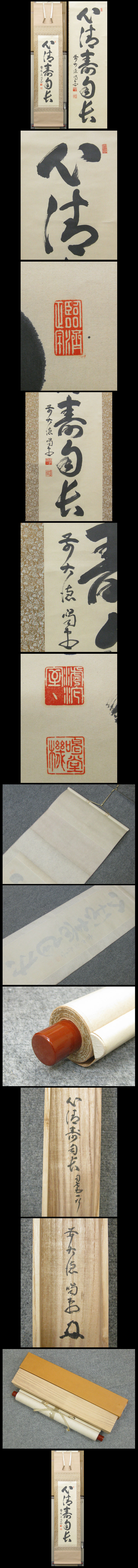 【細合喝堂】 大徳寺塔頭龍源院住職。昭和後期から平成期の臨済宗僧侶。 茶道の造詣が深く茶杓、一行書などを良く残す。 「心清寿自長」 心が穏やかで思い悩む事が無ければ、 人は自然と長く生きることが出来る、という意味の禅語です。 ★商品サイズ★ ■掛軸 181×42.5cm ■作品 100×29.5cm ★商品の状態★ 良い状態です。 時代など詳しくは画像にてよく確認のうえでご検討いただければと思います。 どうぞよろしくお願いいたします。 |