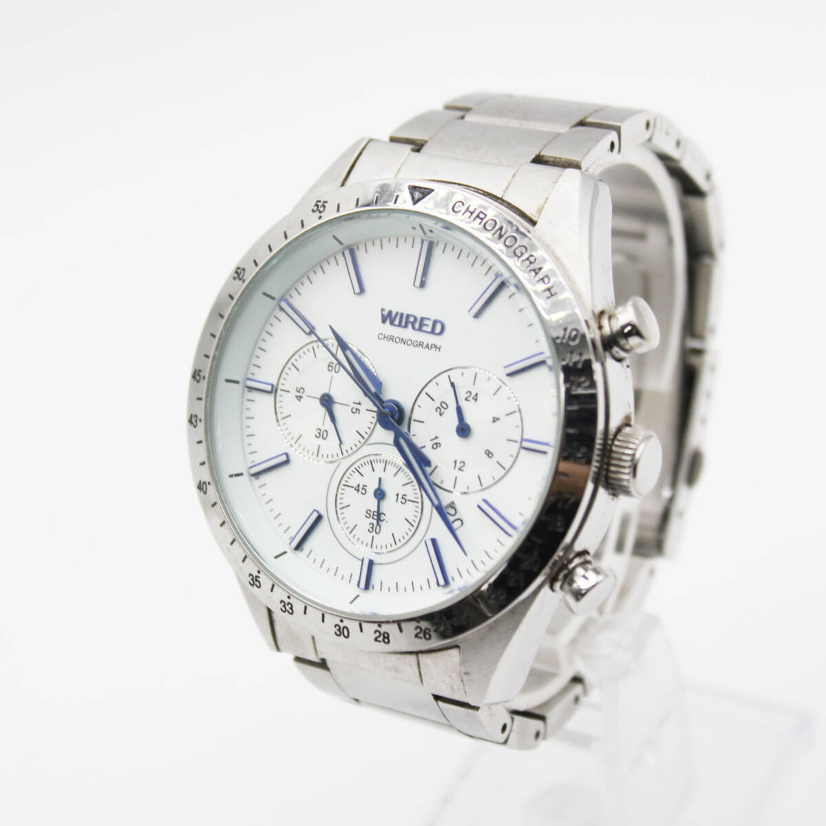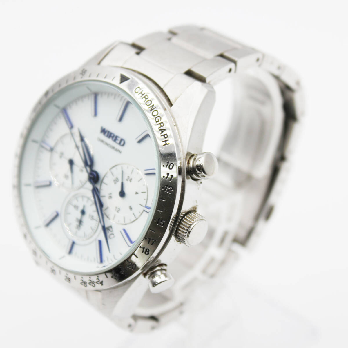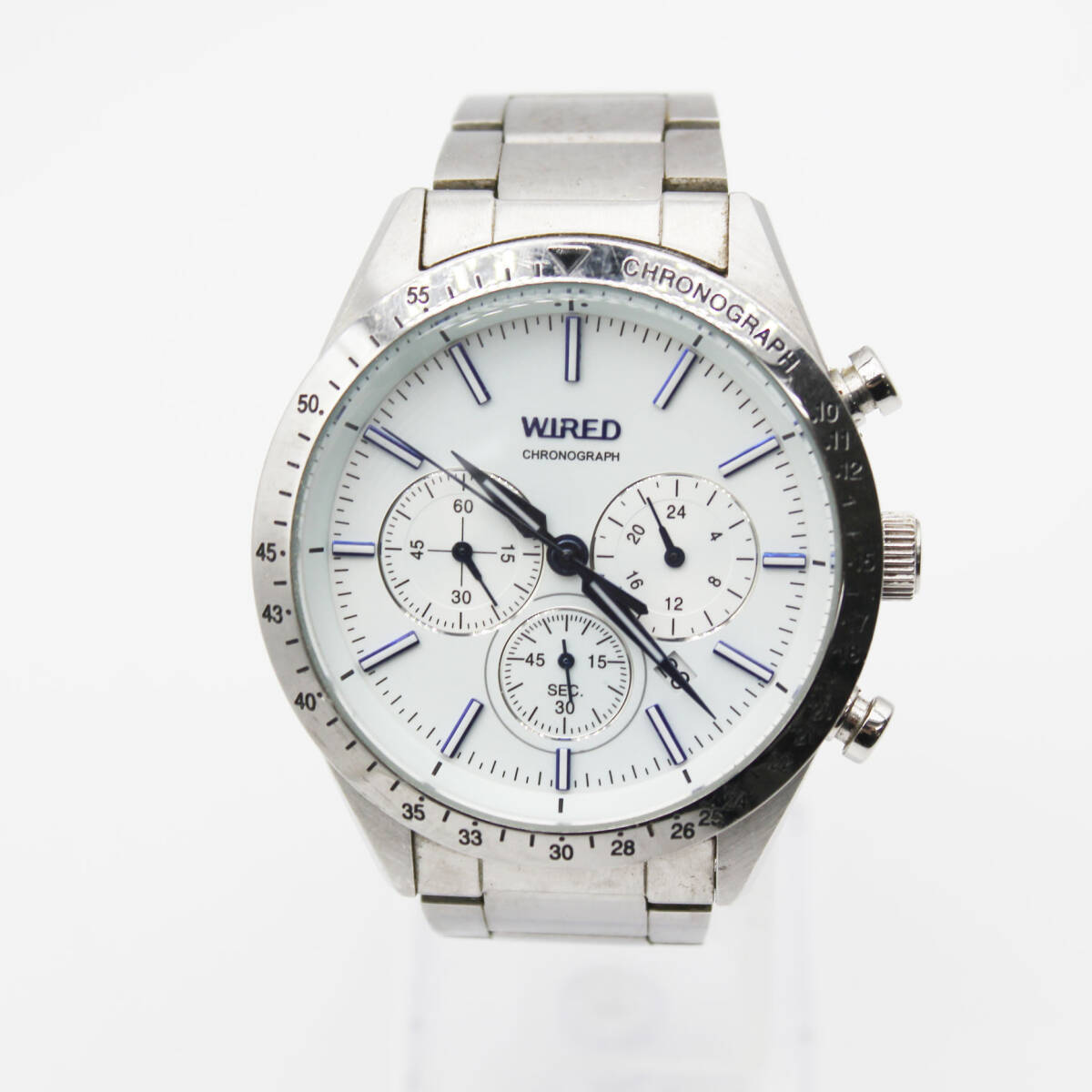 W251009-29 SEIKO WIRED セイコー ワイアード VD53-KT10 メンズ腕時計 クォーツ クロノグラフ デイト ジャンク 文字盤ホワイト 青針