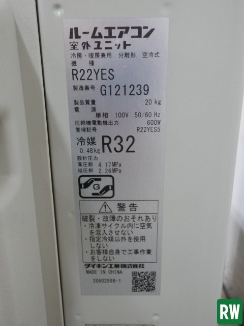 | 型式 | 内機:F22YTES-W 外機:R22YES | |||||||||