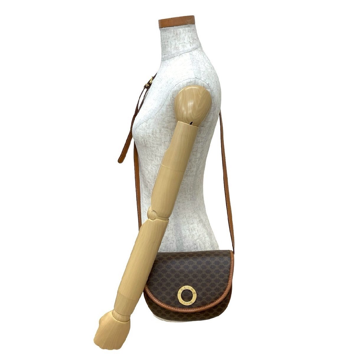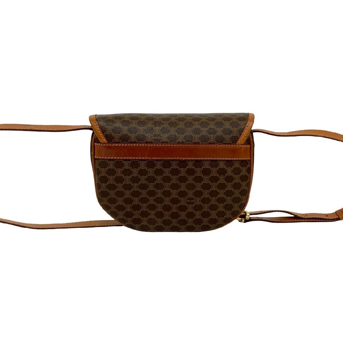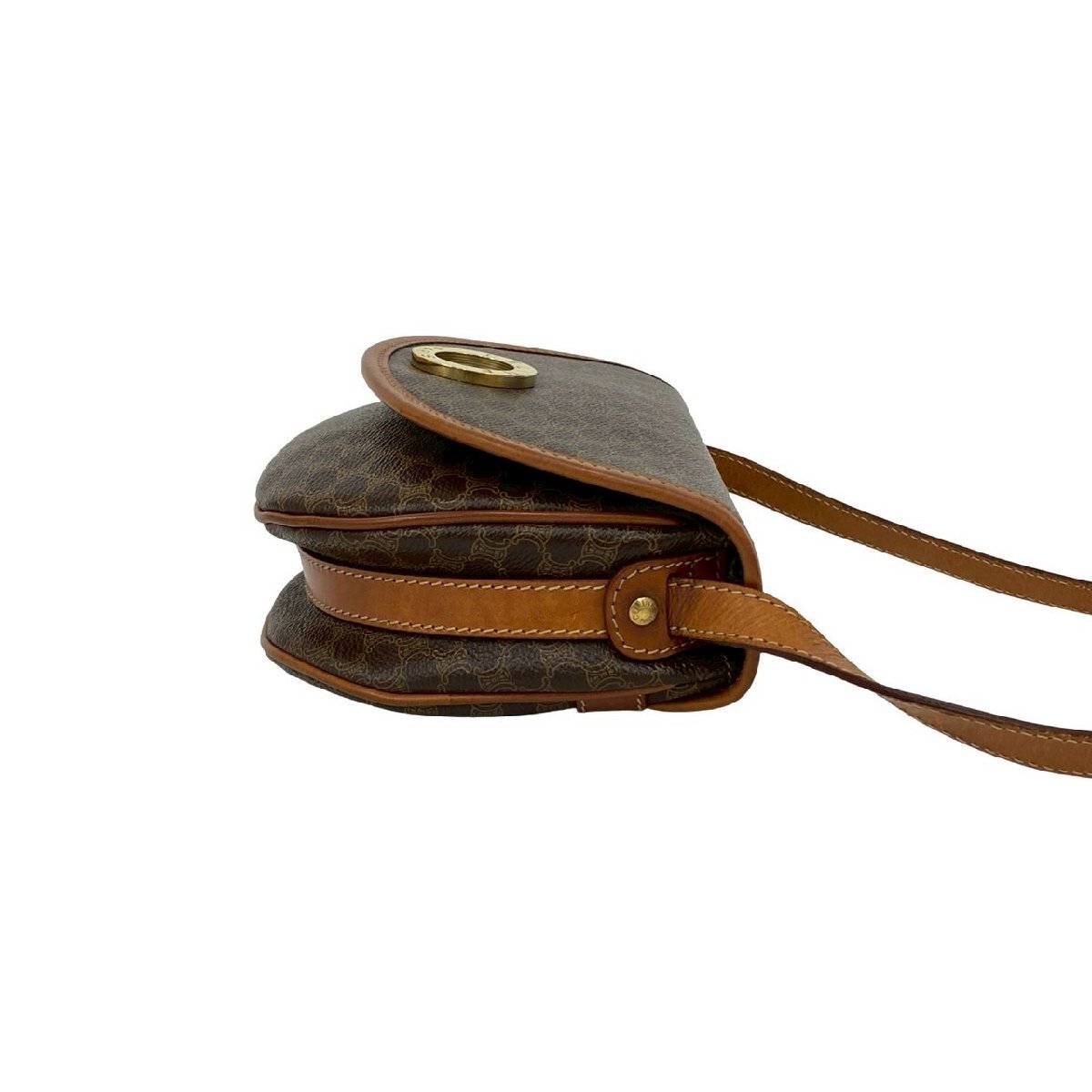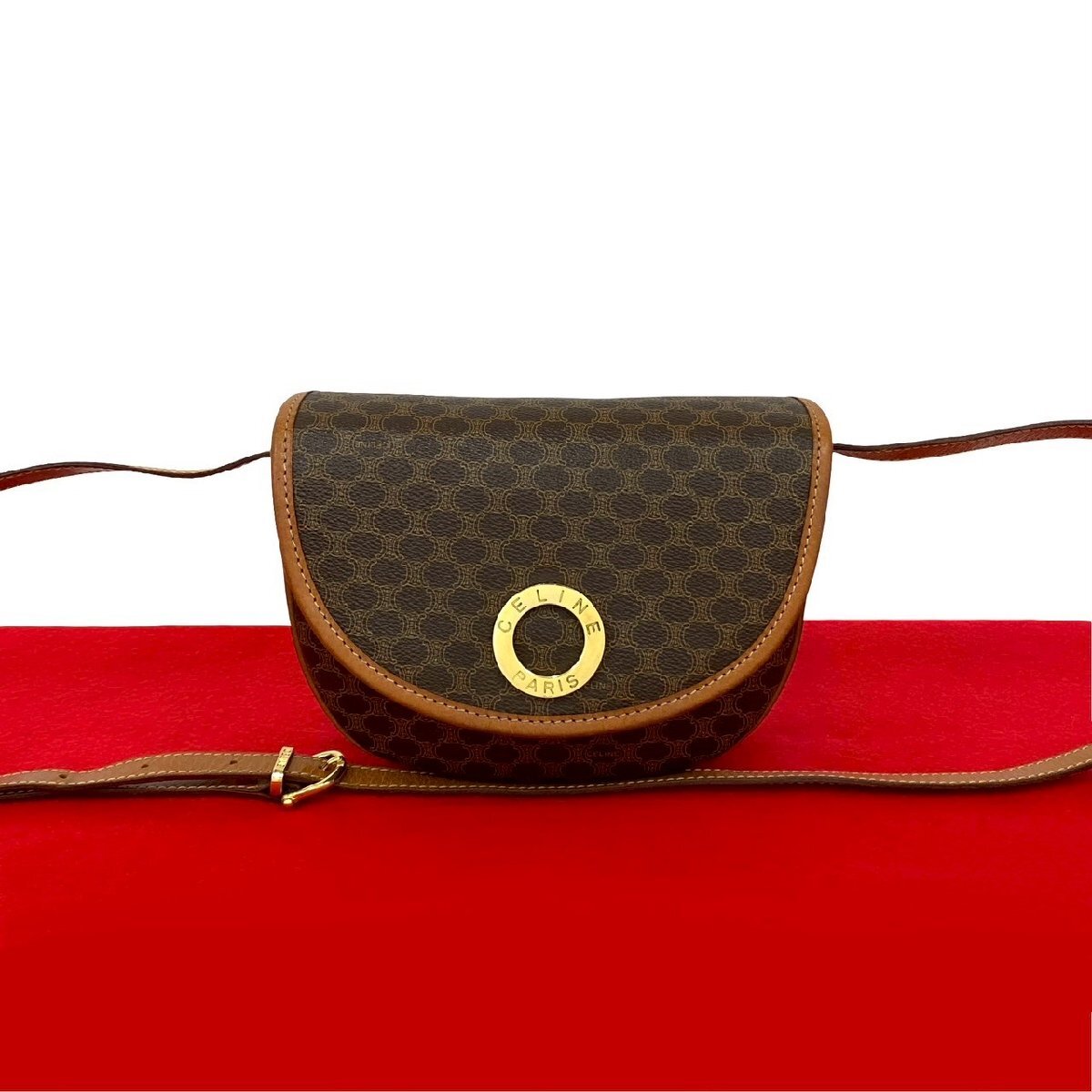 極 美品 CELINE セリーヌ ヴィンテージ サークル ロゴ 金具 マカダム 柄 レザー 本革 ショルダーバッグ ポシェット ブラウン 56165