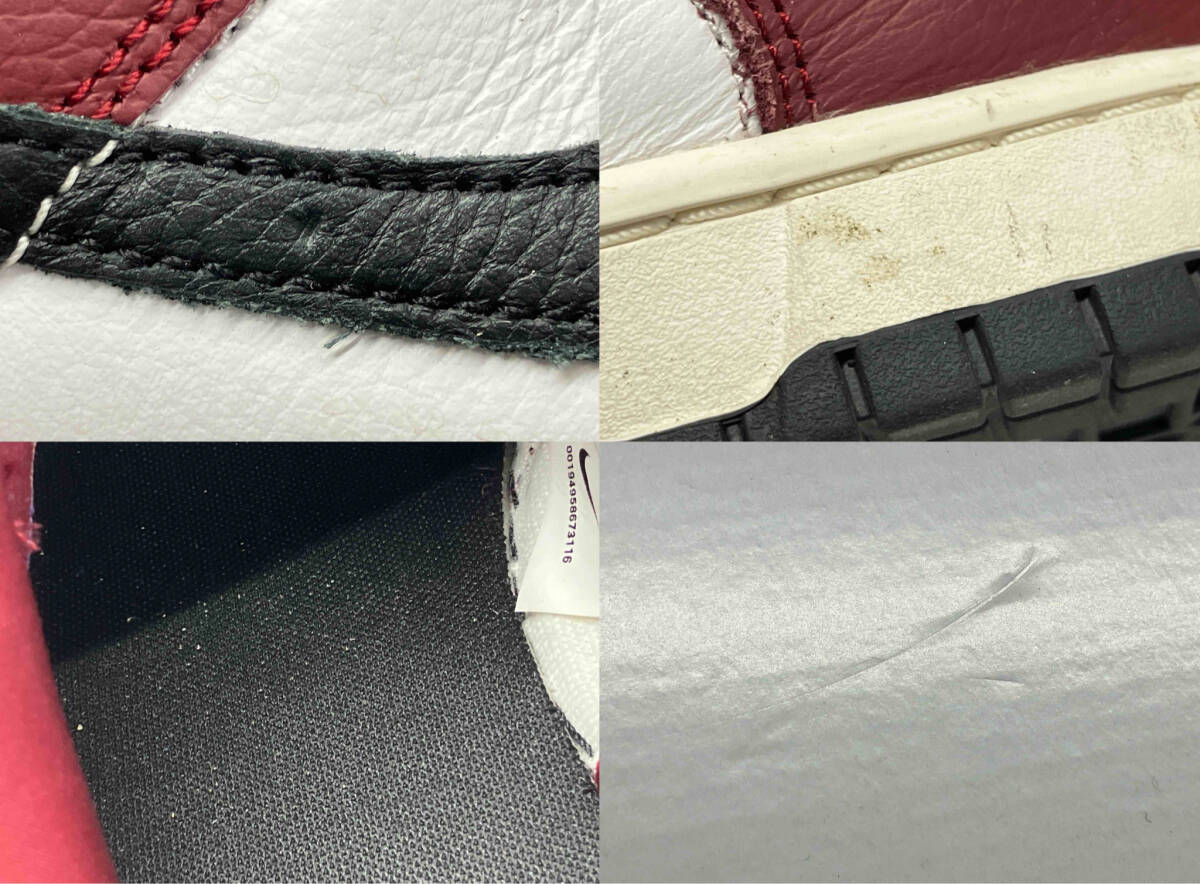 | 全体的に使用感あり 両足のアッパーにシワ・軽度の汚れあり 両足の中・ソールに汚れあり 右足のスウッシュに傷あり 箱に汚れ・シワ・傷・擦れあり |