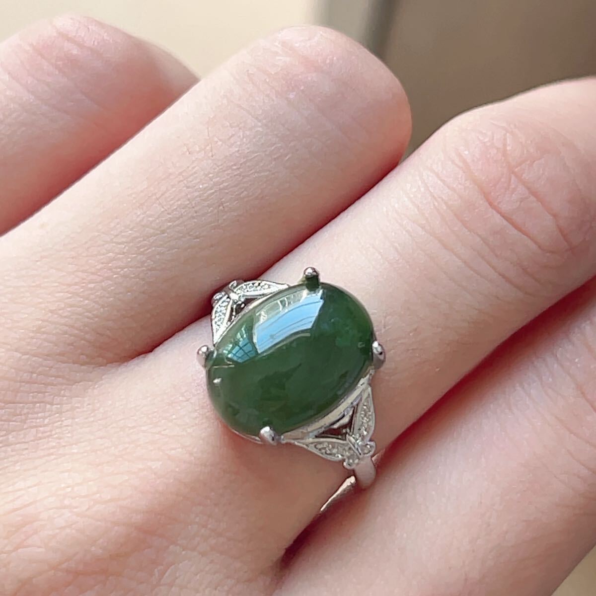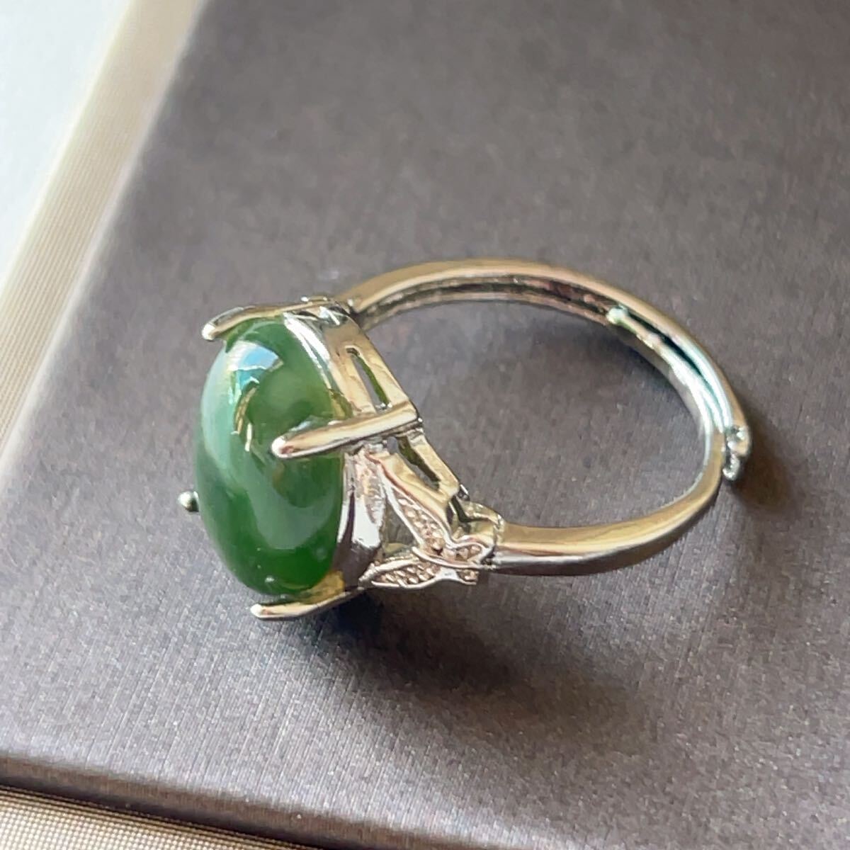 ◇和田玉碧玉◇翡翠・ヒスイ◇リング指輪◇フリーサイズ◇天然石◇パワーストーン◇巾着袋付き◇プレゼントに035R10907