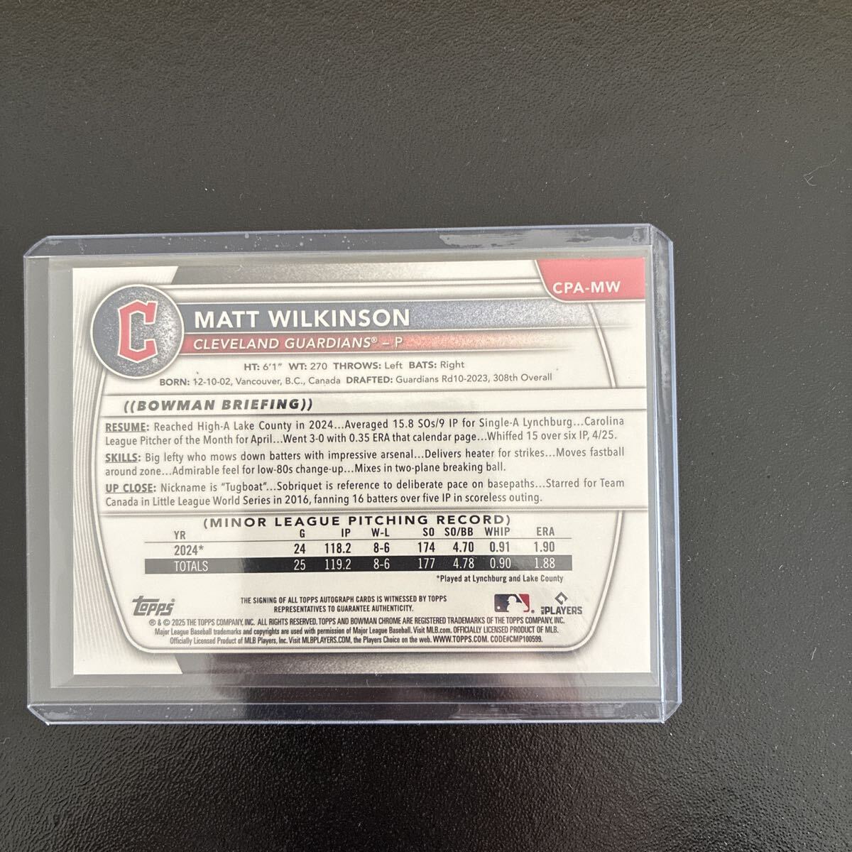 商品名 : Matt Wilkinson Topps bowman 1st Chrome Auto クリーブランド ガーディアンズ