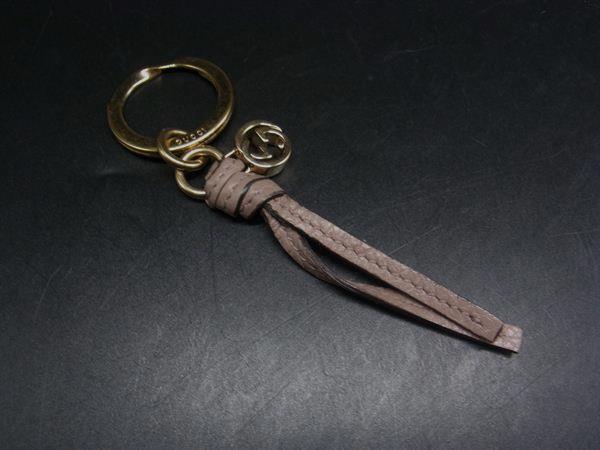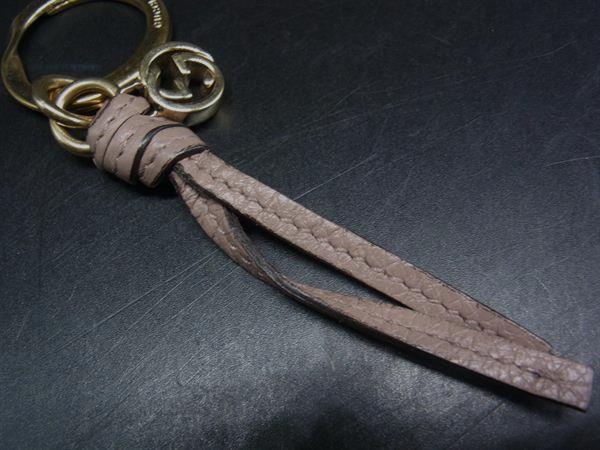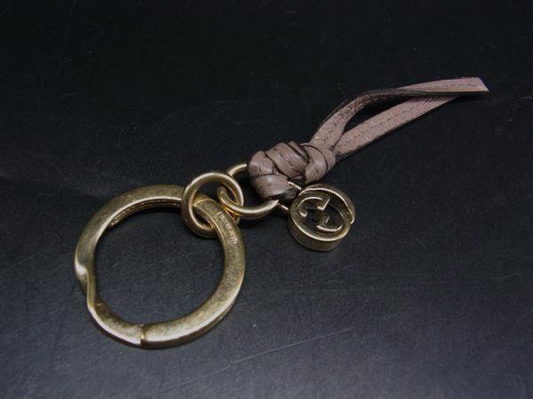 GUCCI グッチ レザー インターロッキングG バッグチャーム キーホルダー キーリング グレージュ系 DJ6834