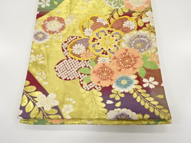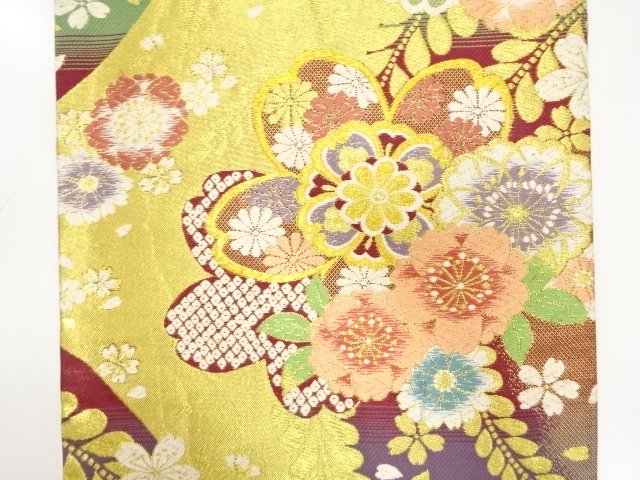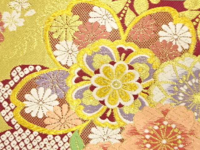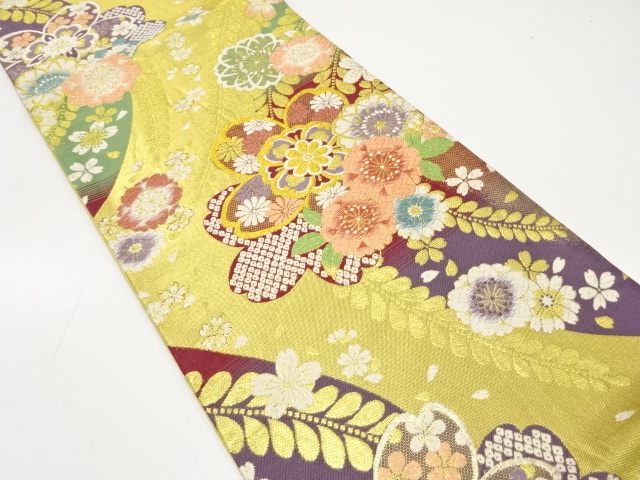 美品 桜に藤模様織り出し 振袖用 袋帯 (AJG3K-023)